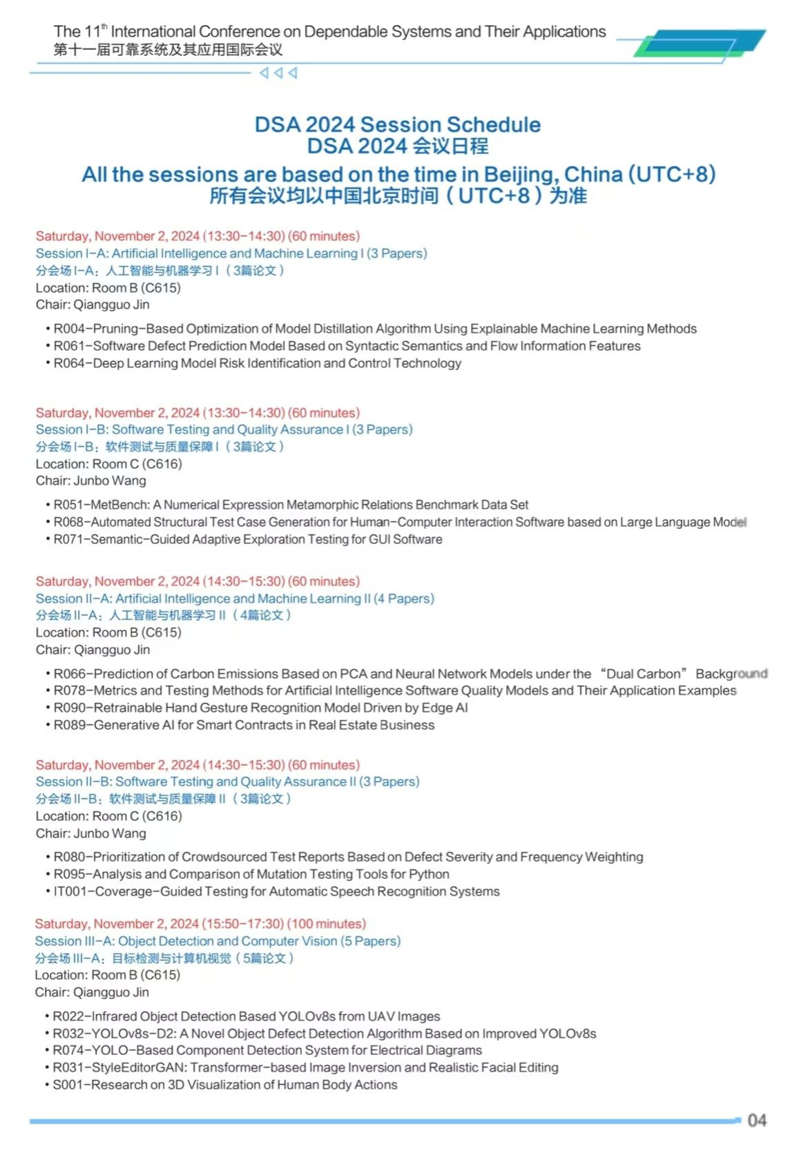 第十一届可靠系统及其应用国际会议(DSA 2024)将于2024年11月2日-3日在BEAT365英国官网太仓智汇港举办,会议安排如下,欢迎各位专家学者参会交流。