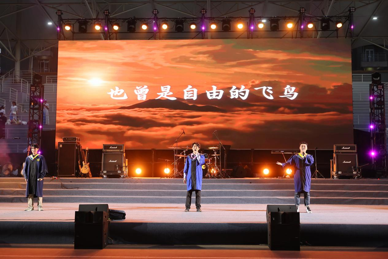 毕业晚会共分《溯光·研途长河》《拾焰·此间炽热》《乘风·山海新章》三个篇章。热舞、摇滚、对唱、民乐合奏......一个个精彩纷呈的节目串起从入学到毕业的青春记忆,同时穿插抽奖与互动,祝福毕业生们挥别校园,信心满满地奔赴下一程山海。