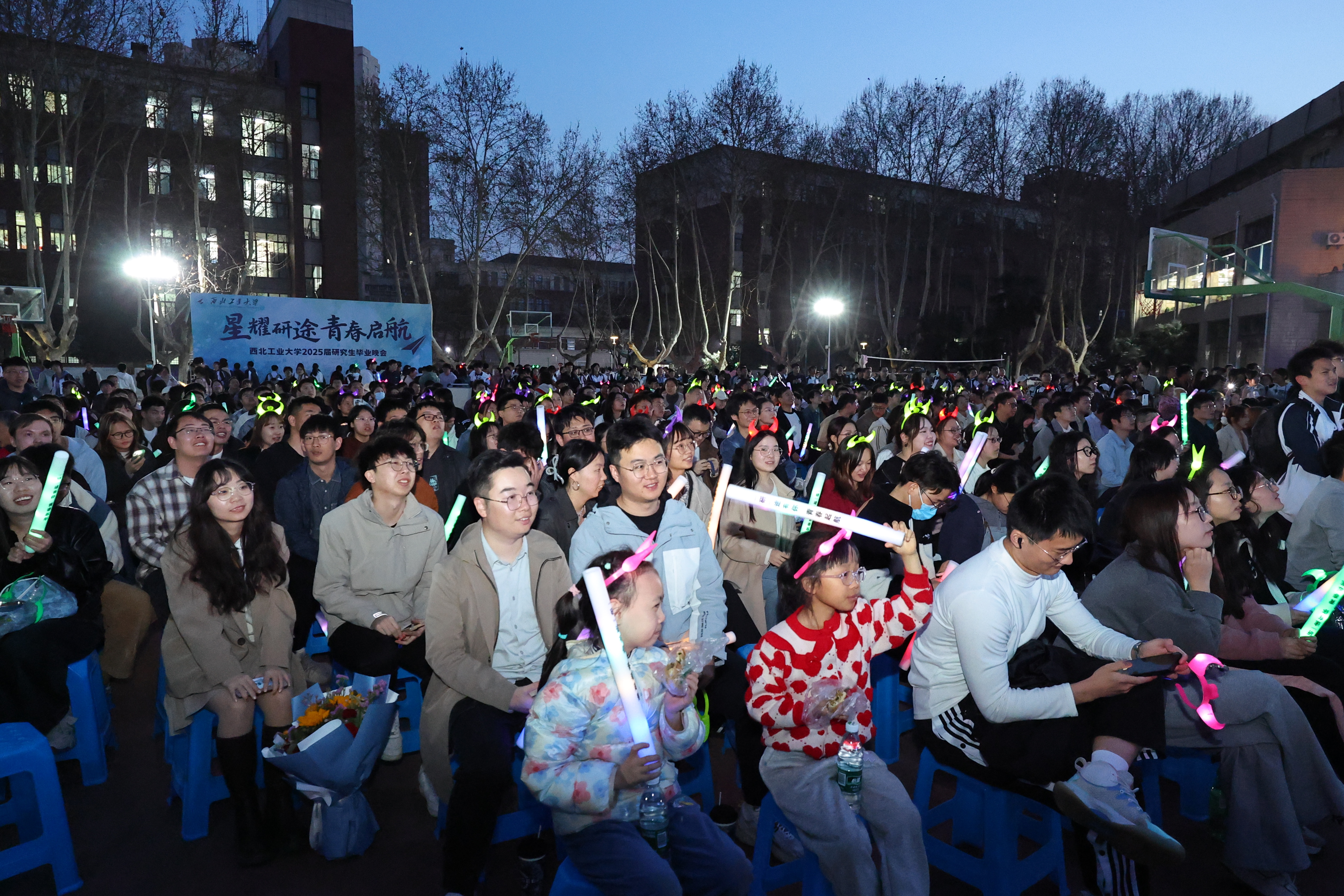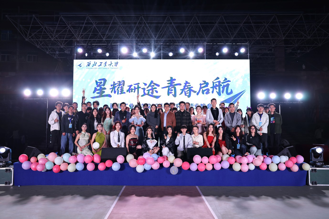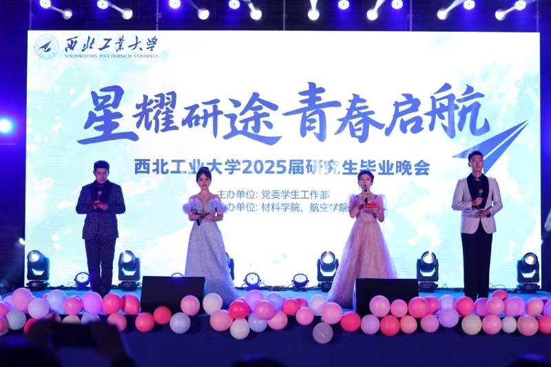 同期,在友谊校区也举办了2025届研究生毕业晚会。晚会由学工部主办,材料学院和航空学院承办,以“星耀研途 青春启航”为主题,友谊校区近千名师生在春色满园、生机盎然中,拥抱未来,奔向远方。
