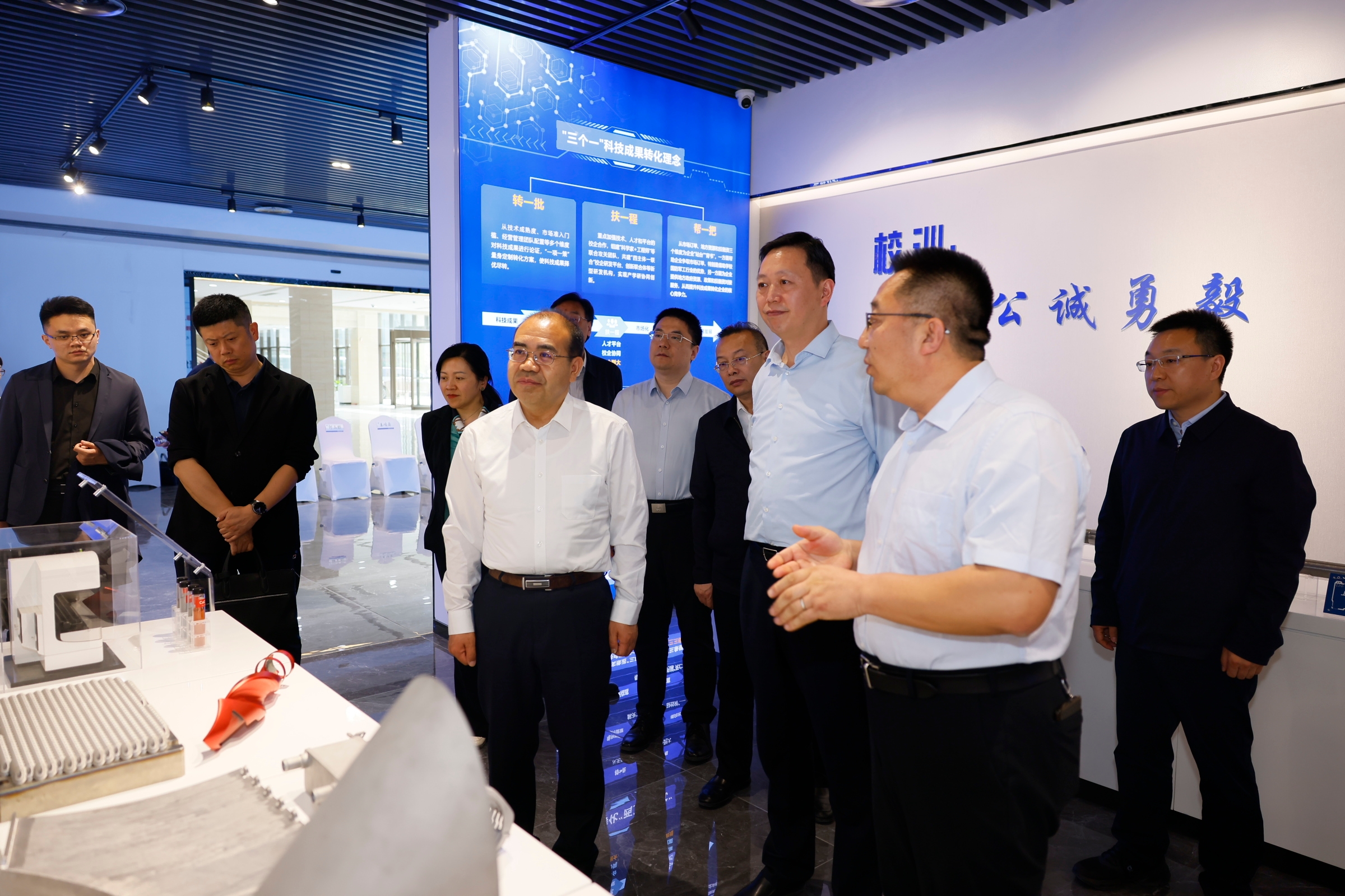 座谈会前,杨志文一行还参观了学校科技馆、科技成果转化展厅。