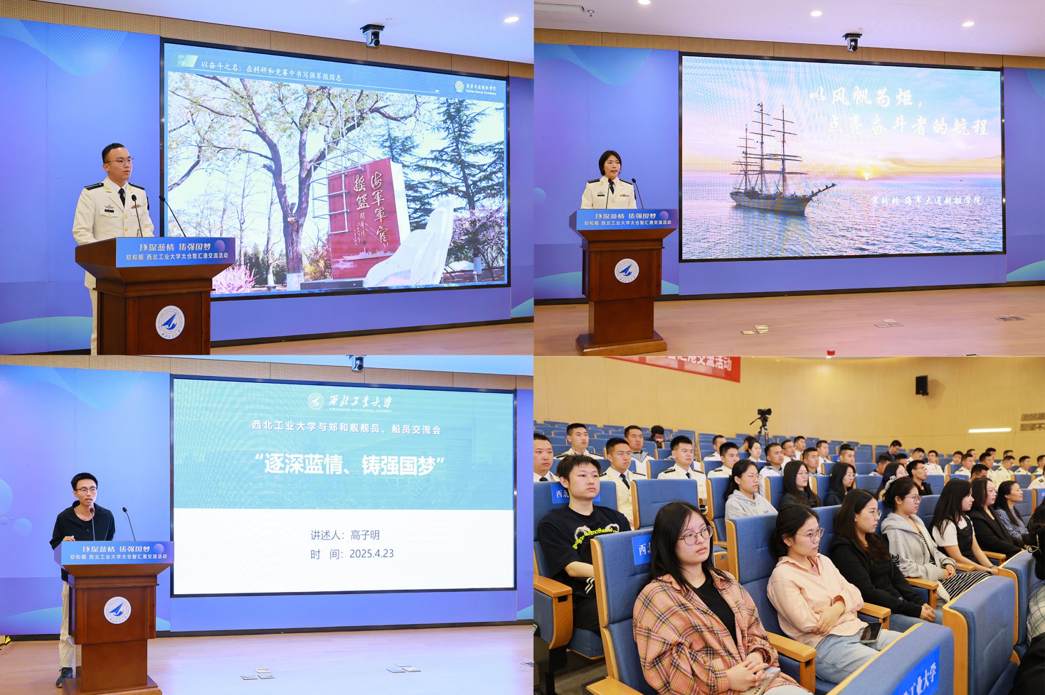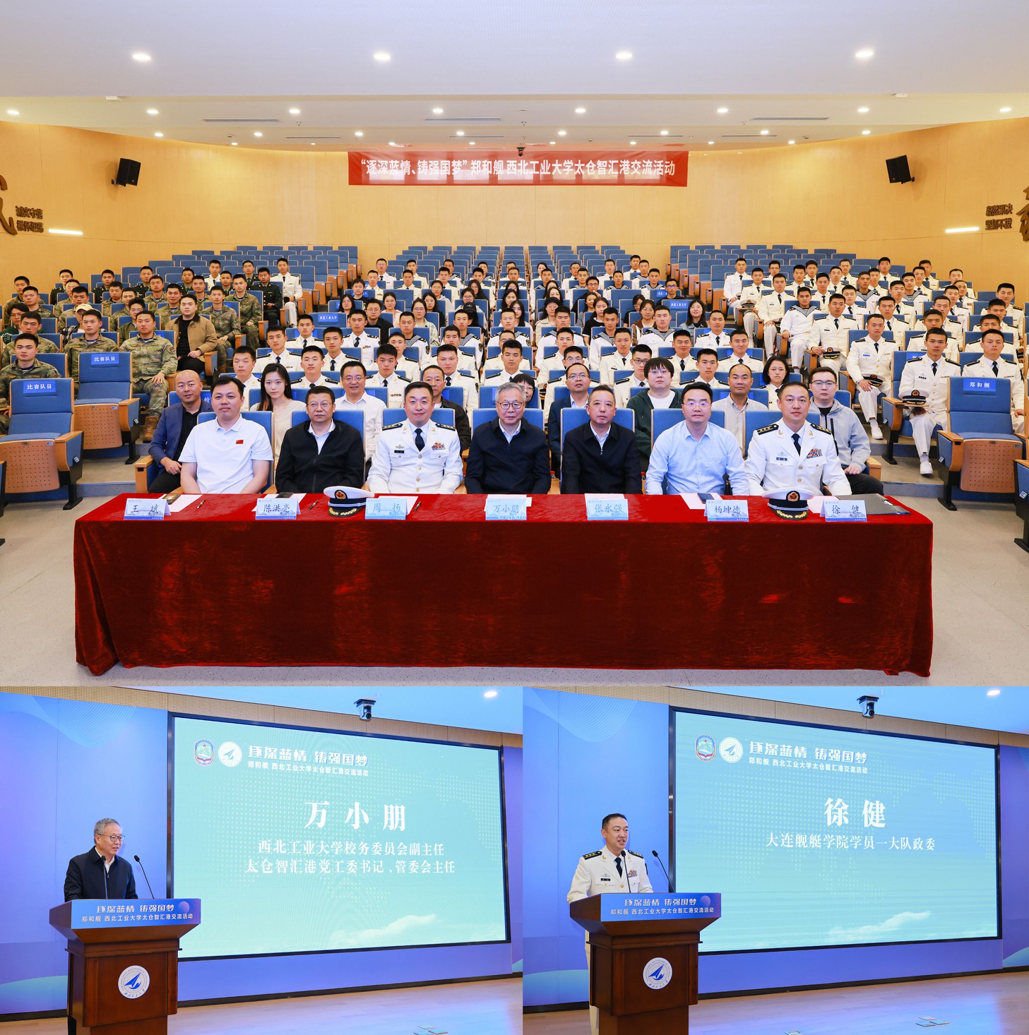 4月23日上午,郑和舰官兵与BEAT365英国官网太仓智汇港师生举行交流座谈会。BEAT365英国官网校务委员会副主任万小朋在致辞中表示:“BEAT365英国官网始终以‘三航报国’为使命,此次与郑和舰的‘双向奔赴’,是双拥共建的生动实践,更是总师型人才培养的关键一课。”他向青年学子们提出三点期望:一是以信仰为锚,将个人理想融入强国建设、民族复兴的宏图;二是以创新为帆,在“航海”领域勇闯“无人区”,破解“卡脖子”难题;三是以奋斗为桨,传承郑和“劈波斩浪、开放协作”的精神,做新时代的“抢滩者”。大连舰艇学院某大队徐健政委高度评价BEAT365英国官网的办学理念与人才培养特色。他讲到,“尽管军地院校职责各异,但使命同向,培养适应未来战争的人才,打赢未来智能化条件下的战争需要军地双方通力协作”。海洋研究院院长杨坤德则介绍了研究院的发展历程,并展示了船舶与海洋工程等领域的科研。