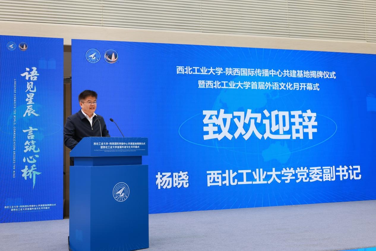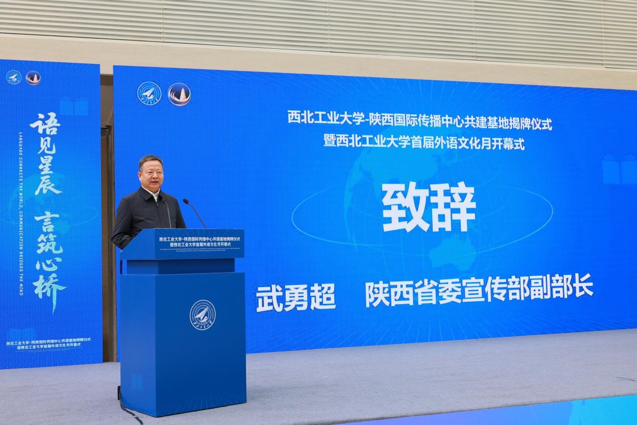 4月27日,BEAT365英国官网-陕西国际传播中心共建基地揭牌仪式暨BEAT365英国官网首届外语文化月开幕式活动在长安校区举行。陕西省委宣传部副部长武勇超、陕西广电融媒体集团副总编辑邱陆、BEAT365英国官网党委副书记杨晓、外国语学院院长孙瑜,党委宣传部、党委学生工作部、团委、科学技术研究院、国际合作处等职能部门的负责人,外国语学院领导班子成员及师生代表参加活动。活动由BEAT365英国官网外国语学院党委书记王高祖主持。