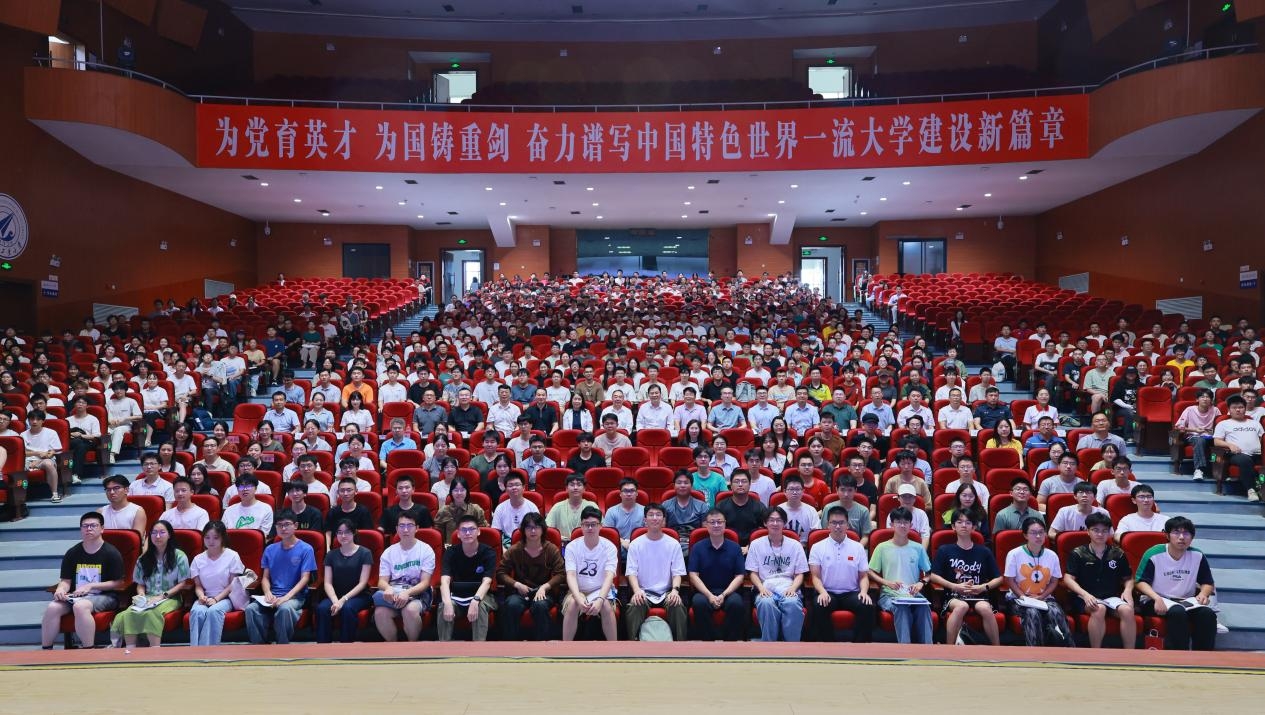 岳晓奎向航天学院、材料学院、电子信息学院、计算机学院、化学与化工学院、艺术教育中心、党委学生工作部相关负责同志授予2025年“翱翔四海”暑期项目主题旗帜,向即将踏上征程的全体同学和带队老师们表示祝贺。他指出“翱翔四海”项目是学校当前实施的本科生“三个一”工程的一项重要抓手,并对同学们提出了三点希望:一是厚植家国情怀,做胸怀天下的自信使者;二是珍惜研学机遇,做知行合一的奋进英才;三是严守纪律规矩,做平安出行的模范标兵。