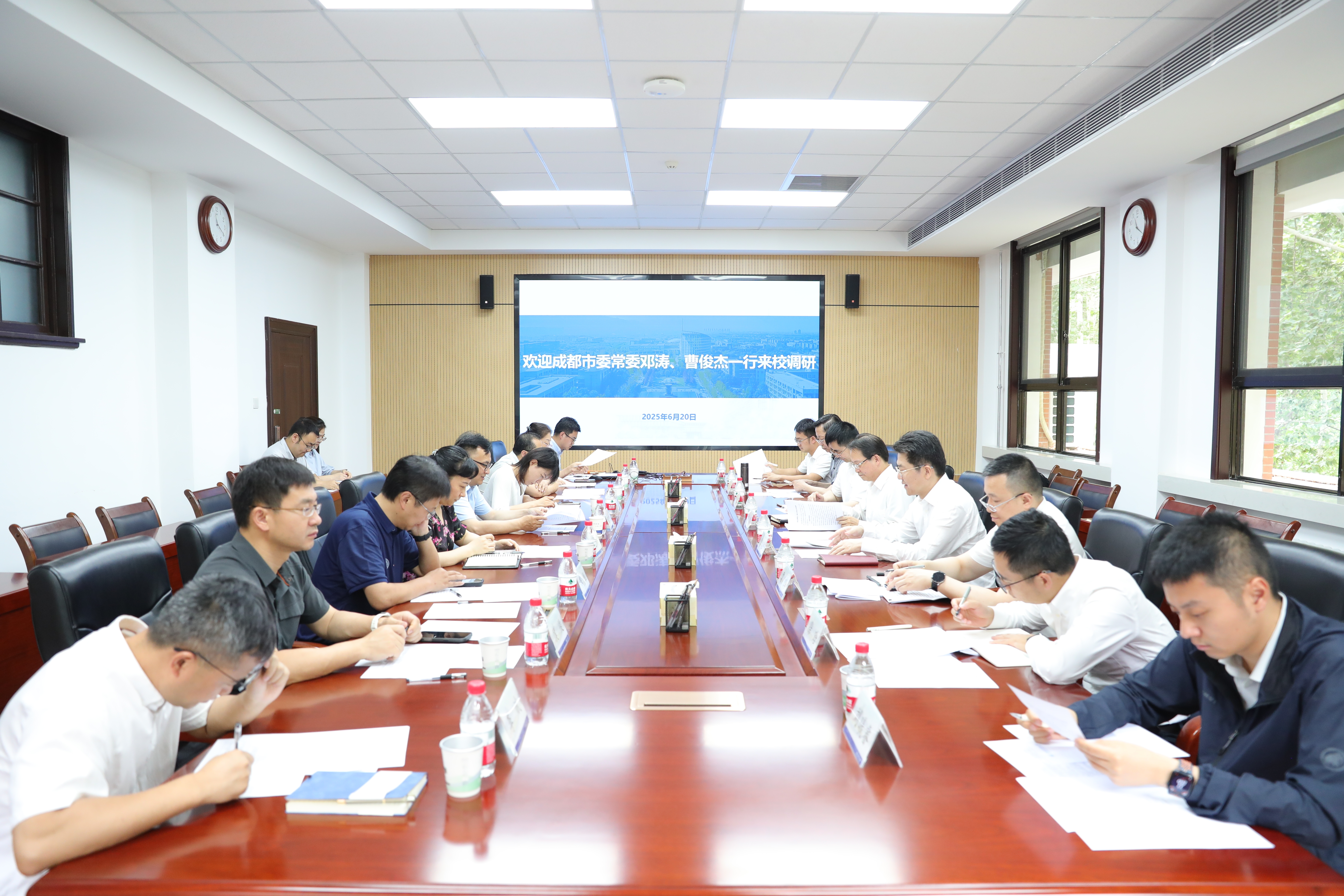 6月20日,成都市委常委、组织部长邓涛,市委常委、常务副市长曹俊杰一行来校调研。校党委书记李言荣会见邓涛、曹俊杰一行。党委常务副书记吕卫东,副校长张开富,校长助理王宇波分别参加调研。