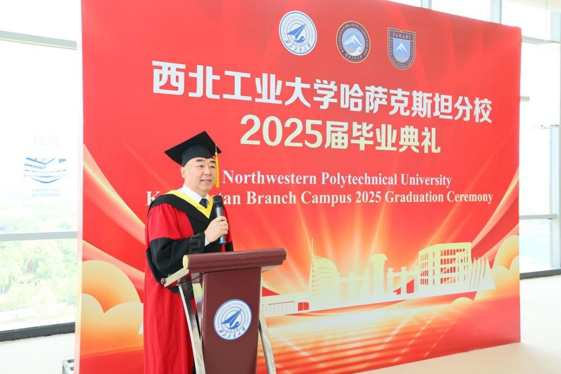 导师代表、材料学院教授刘哲在毕业寄语中表示,同学们在中哈文化浸润下的求学经历,是一笔弥足珍贵的人生财富。他说,这种跨文化的双重视角不仅拓宽了认知维度,更培养了学生们开放包容的思维方式,希望同学们成为促进文明互鉴、推动国际合作的主力,为构建人类命运共同体贡献智慧和力量。