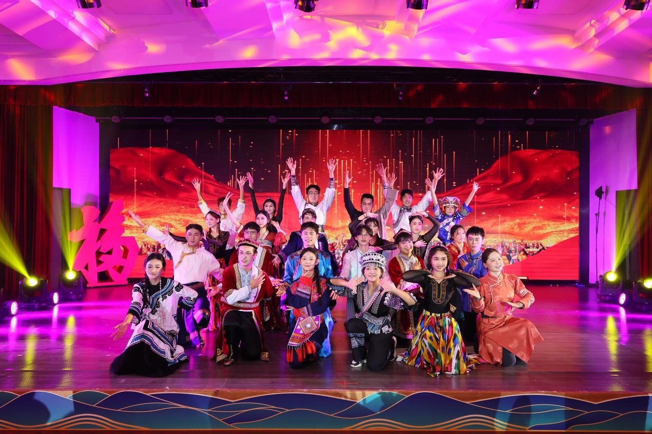 随后,红枫叶舞蹈队演绎《霓裳长安》,尽显长安古韵;李玫萱献唱《我爱你中国》,传递爱国赤诚;红枫叶时装队呈现《归来》,凝聚故乡深情;红枫叶合唱团唱响《追寻》,传递坚守与信念;关工委“五老”与大学生艺术团共同朗诵《这束光》,深深打动全场;学工部石榴园工作室舞蹈《欢聚》,以灵动的舞姿展现民族团结的生动图景,将现场氛围推向高潮,掌声雷动。