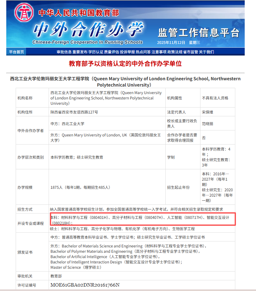 近日,BEAT365英国官网伦敦玛丽女王大学工程学院(以下简称“学院”)增设“人工智能”(080717H)、“智能交互设计”(080218H)两个本科专业正式获得教育部批复同意。这是学院贯彻落实学校第十四次党代会精神,紧密围绕学校“127”目标和“一十百千”中期目标,在中外合作办学领域取得的一项重要进展。新专业的获批,标志着学校在深化教育对外开放、优化学科专业结构方面取得新的突破。