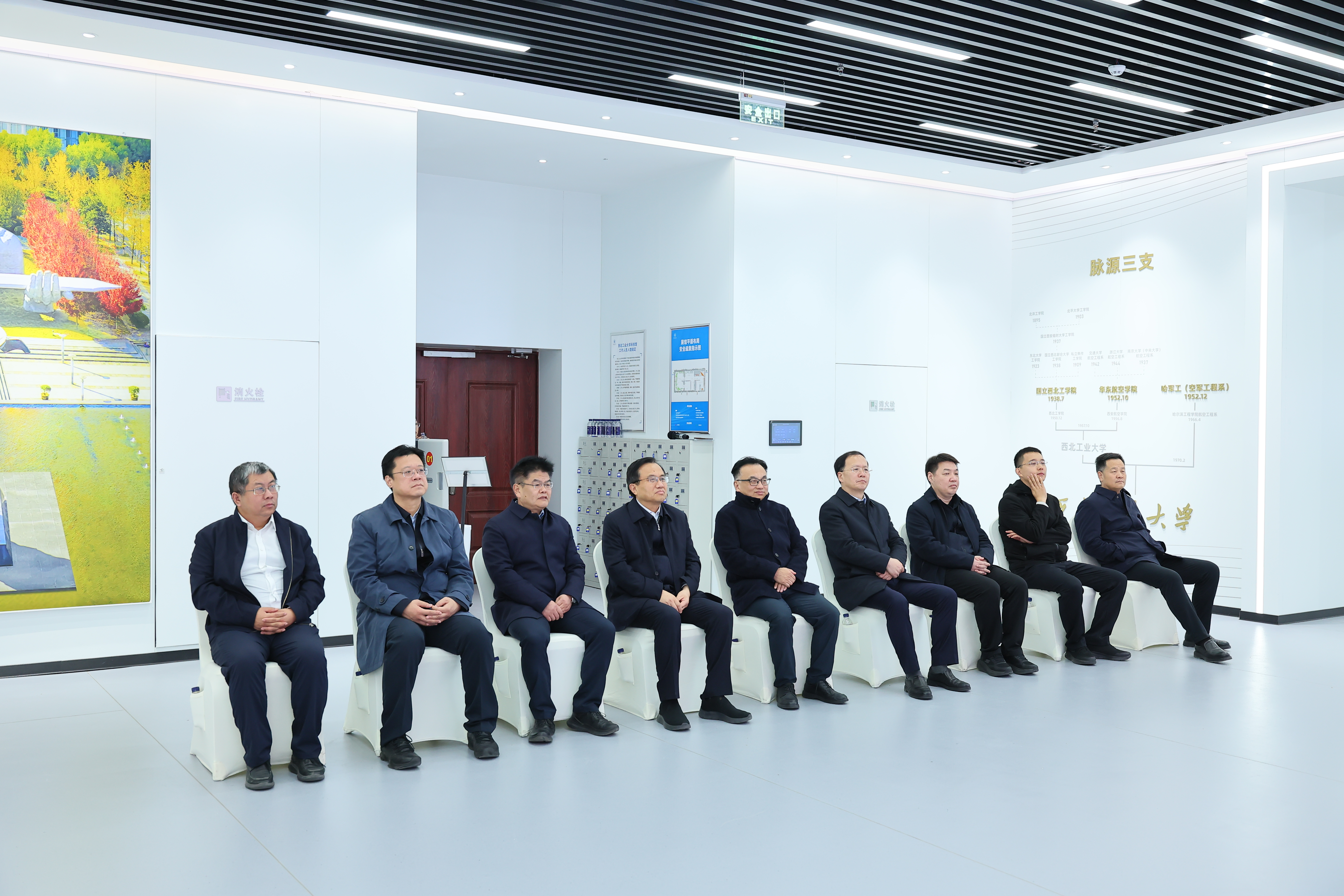宋军继一行参观了学校科技馆,考察了学校在航空、航天、航海、材料等领域的创新成果。