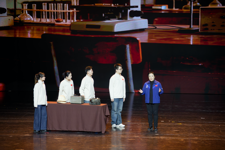 为精准把握、精彩呈现“总师思政课”育人魅力,在省委宣传部和陕西省政研会的统筹指导下,学校党委宣传部牵头西安市话剧院组成专项工作小组,学校艺术教育中心、工会等单位大力支持,持续打磨、精心编排了同名情景剧作为现场展示作品。情景剧从大国重器下听总师讲思政课、实践教学基地中看总师工作过的地方、校园舞台上演绎总师们的故事三个章节,还原了课程“课堂-实践-舞台”的三维形态,生动展现了“总师思政课”的育人实践与成效。