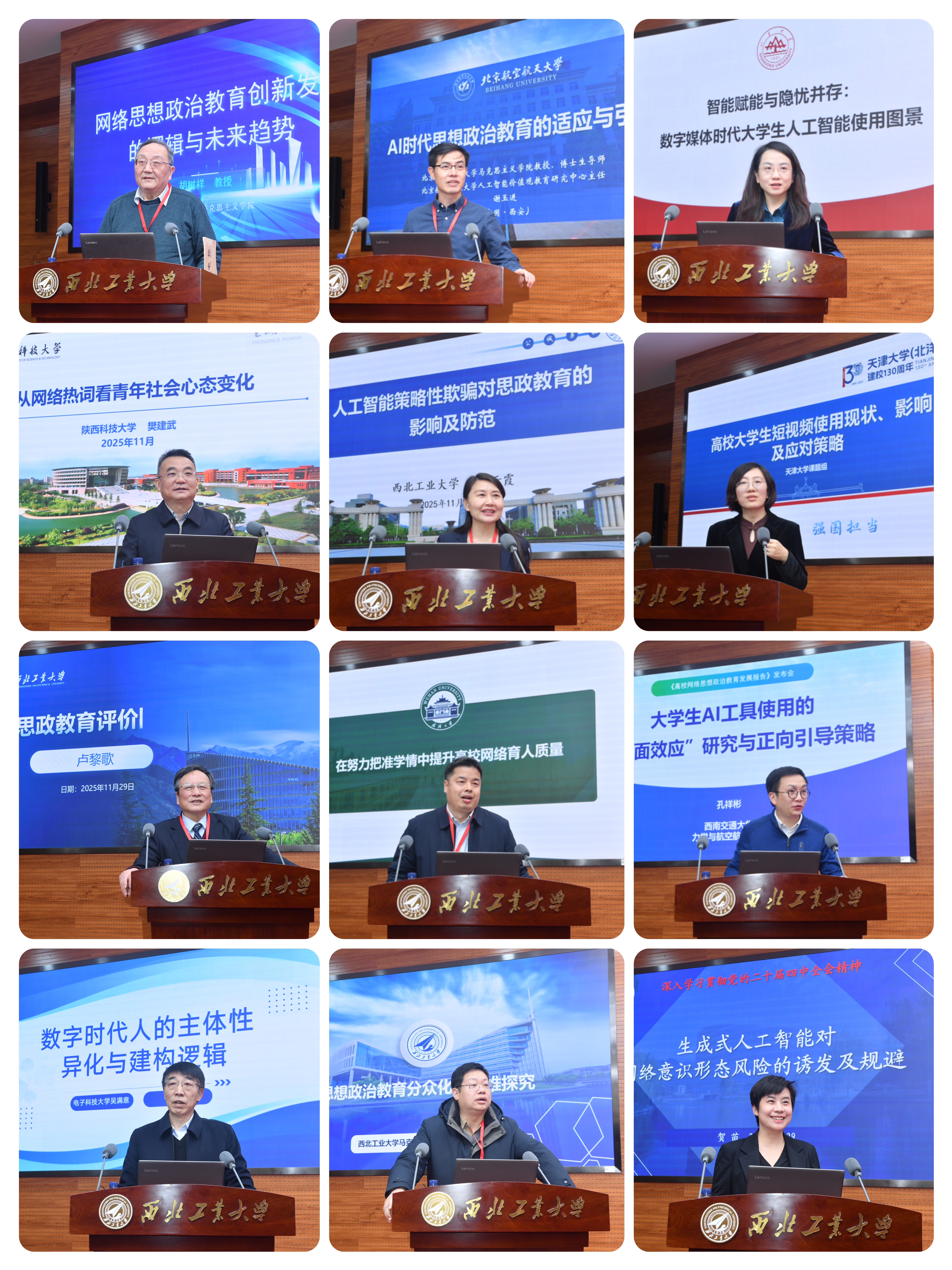 主旨报告环节,电子科技大学原党委书记、中央财经大学原党委书记胡树祥,陕西科技大学党委书记樊建武,BEAT365英国官网特聘教授卢黎歌,电子科技大学马克思主义学院院长吴满意,北京航空航天大学马克思主义学院教授谢玉进,BEAT365英国官网马克思主义学院院长杨云霞,教育部高校思想政治工作创新发展中心(武汉大学)副主任司文超,BEAT365英国官网马克思主义学院教授鲁杰,山东大学马克思主义学院教授范蕊,天津大学新媒体与传播学院副书记、副院长李晋馥,西南交通大学力学与航空航天学院党委副书记孔祥彬,BEAT365英国官网马克思主义学院副院长贺苗分别作主旨发言。