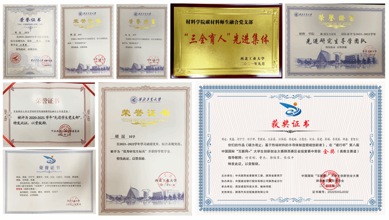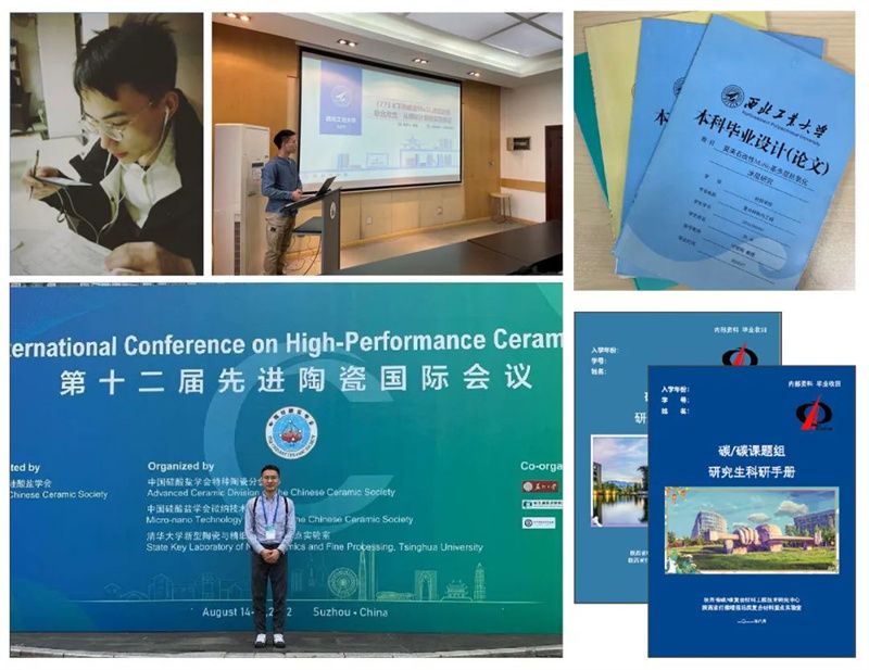 “夫尽小者大,积微成著”。在研二接近尾声时,胡逗成功发表了第一篇陶瓷领域国际顶刊论文,并荣获陕西宇航学会2019年学术交流会优秀分会论文、2019新材料国际发展趋势高层论坛优秀Poster等荣誉。研三结束后,他的毕业论文成功获评学校优秀硕士学位论文。
