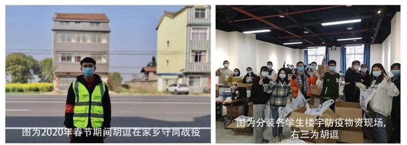 在学校、社会需要的地方,胡逗争做党员先锋。从2020年春节在家乡的守岗战疫,到回归校园后的志愿服务,为因疫情封在宿舍的同学们配送餐饮和抗疫物资,他累计志愿服务时长1000余小时。2022年,胡逗入选校级二类战疫青年先锋队队员。