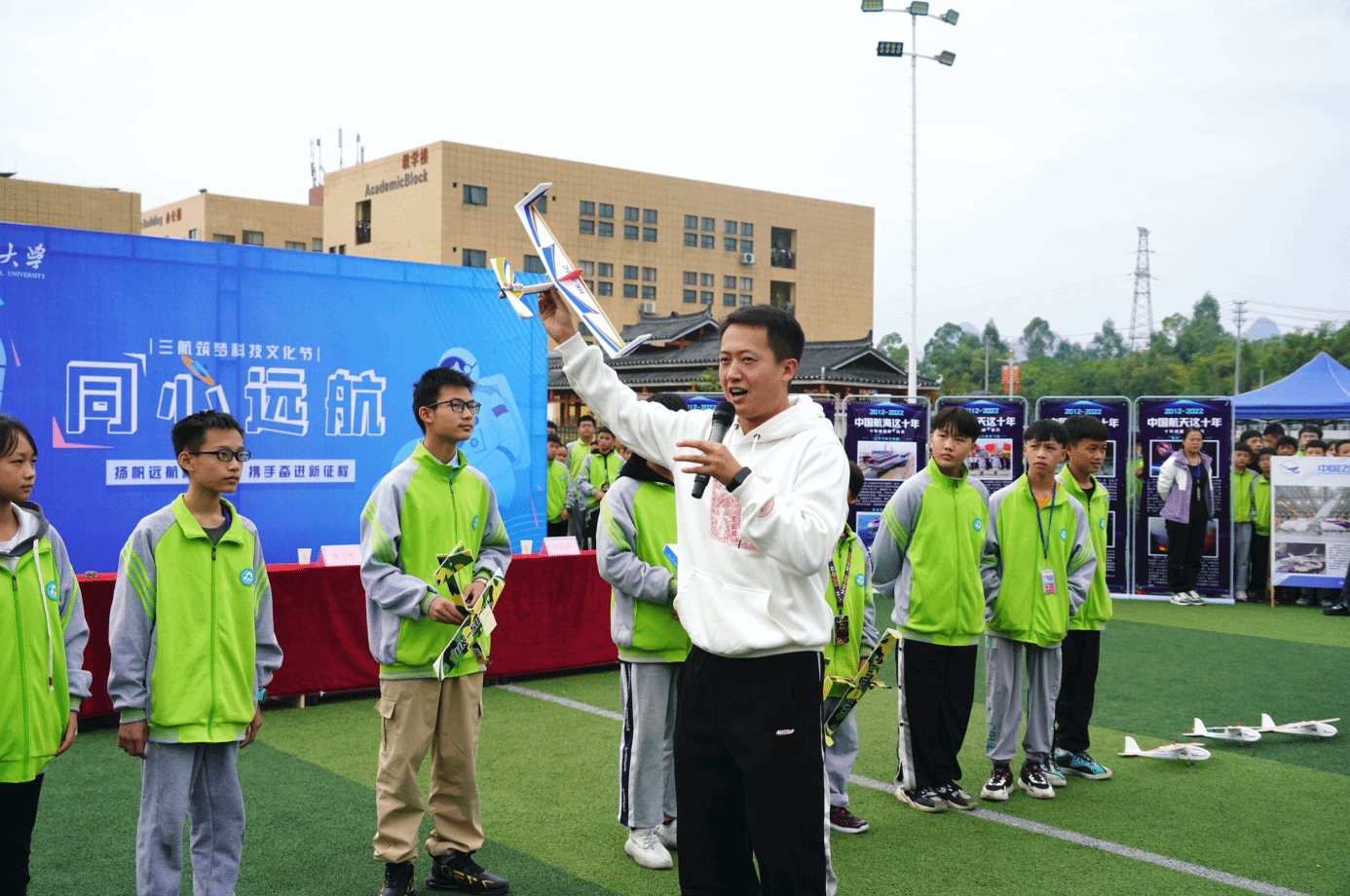 学校为融水高中生组织开展人工智能讲座,开阔学生视野。学校为融水民族中学、思源实验学校、江竹村学子开展航天科普讲座、跨国文化交流活动和火箭制作发射活动各3场,激励大苗山中小学生筑梦航天、报效祖国。