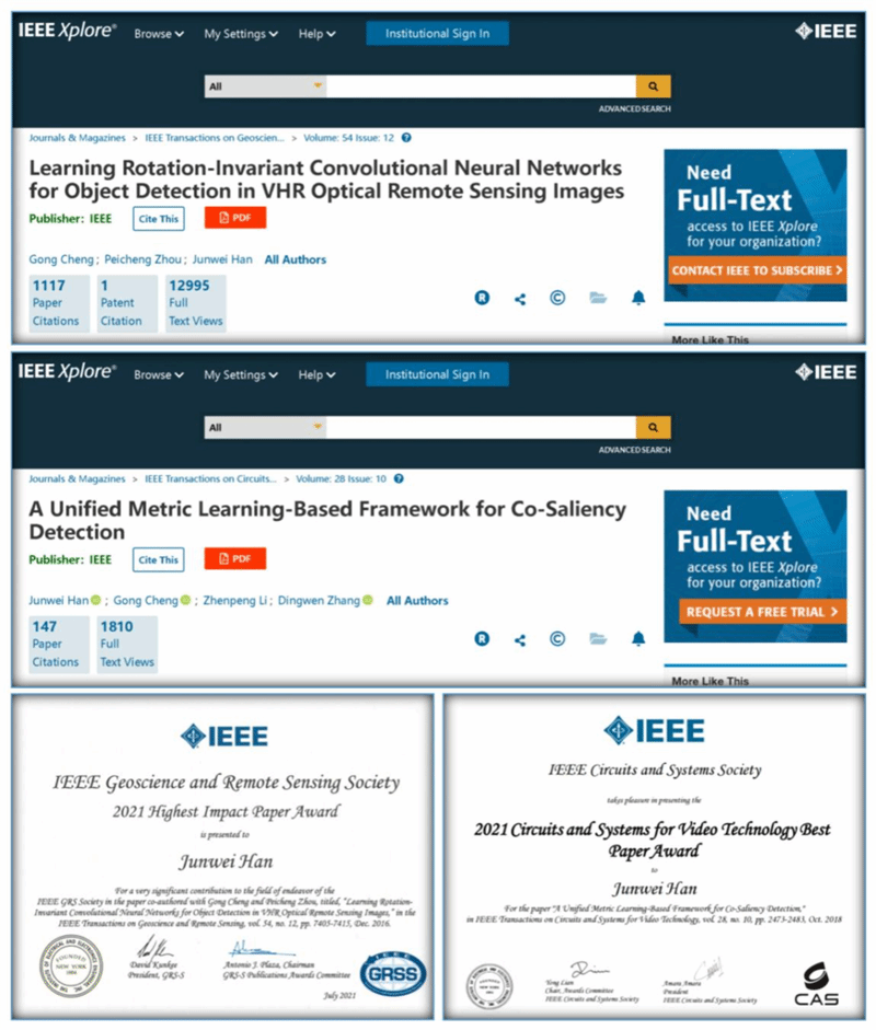 这是该研究团队近三年第三次斩获顶级国际学术奖。其两篇论文[2][3]还分别获得了2021年度IEEE地球科学与遥感学会最有影响力论文奖(中国科研机构独立完成工作首次获奖)、多媒体领域顶级国际期刊《IEEE电路系统视频技术汇刊》(IEEE TCSVT)2021年度最佳论文奖(设奖30年来第二篇中国科研机构独立完成工作获奖)。