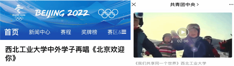 余佳洁作为剪辑策划,与团队成员一同完成了“西安-北京-世界”系列MV,并代表学校登上了共青团中央、北京冬奥会官网