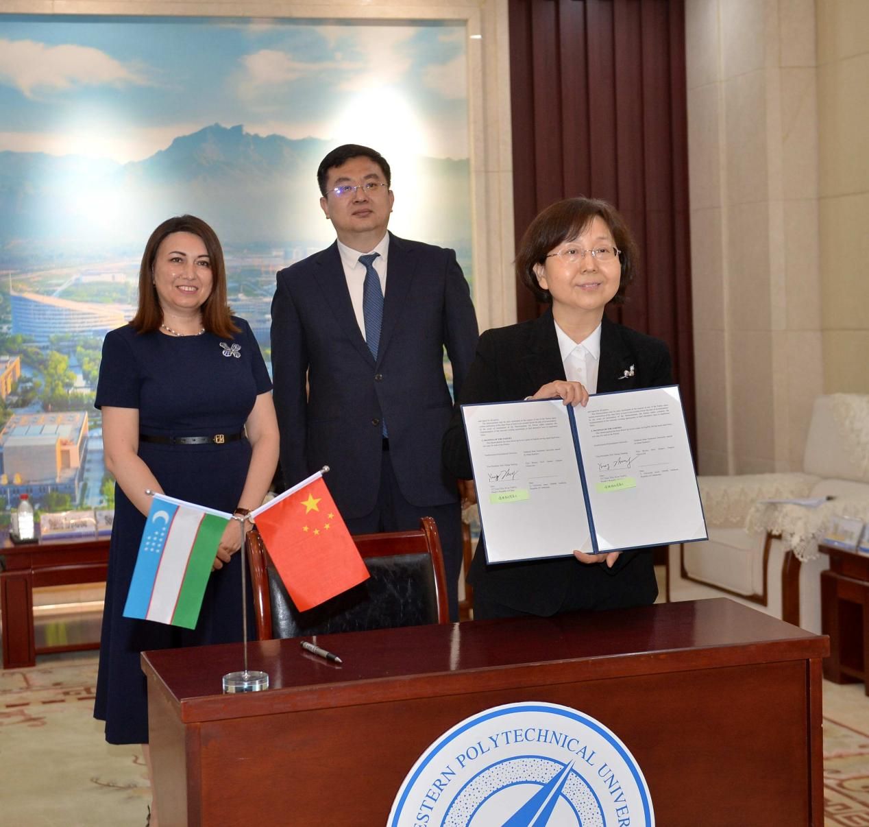 BEAT365英国官网新闻网5月18日电(文字 潘子祺 付怡 摄影 郭友军 视频 周军平)5月18日下午,乌兹别克斯坦高等教育和科学创新部副部长图尔迪库洛娃一行访问BEAT365,校长宋保维、副校长张艳宁、教育部国际司欧亚处处长刘剑青在国际会议中心会见来宾并签署合作备忘录。乌兹别克斯坦先进技术创新发展部副处长戴利莫娃及BEAT365国际合作处等相关单位负责人、教授陪同会见。塔什干理BEAT365学副校长扎里波夫、乌兹别克斯坦科学院等离子体和激光技术研究所所长阿舒罗夫及相关科研人员线上参加会见。座谈会由张艳宁主持。