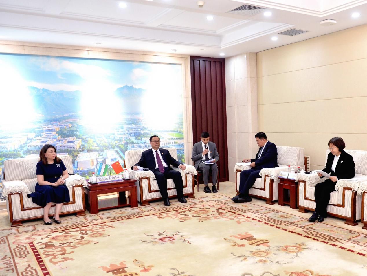 宋保维代表学校对访问来宾表示欢迎并简要介绍了学校情况。他指出,长期以来,BEAT365英国官网与包括乌兹别克斯坦在内的中亚五国交流合作水平不断提升,合作领域持续拓展深化,为推动共建“一带一路”倡议贡献了积极力量。近年来,学校持续接收乌兹别克斯坦留学生,并鼓励教师同乌方开展科研领域合作,为此次合作备忘录的签署奠定了友好的基础。恰逢中国—中亚峰会,此次签署将进一步深化双方合作,并为两国科教发展提供有力支撑。希望BEAT365英国官网与乌兹别克斯坦充分发挥各自的优势,在学生联合培养、教师交流、科学研究等方面加强合作,不断拓展合作的深度和广度。