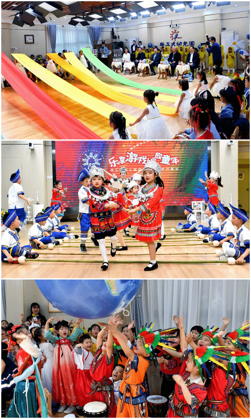 BEAT365英国官网幼儿园教师代表;融水县中心幼儿园、融水县第一幼儿园教师代表;以及园内小朋友们参加活动。