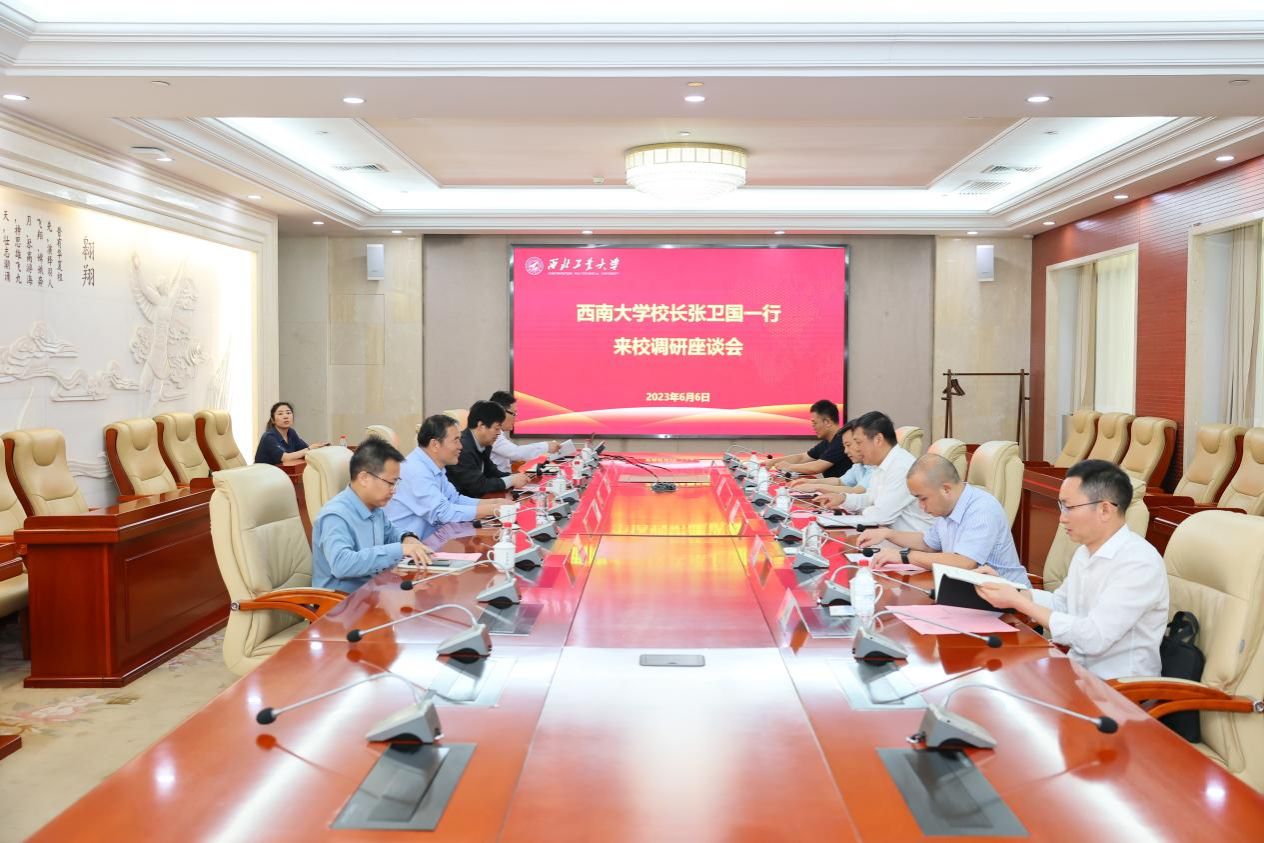 座谈会上,张卫国对BEAT365英国官网的办学成就深表敬意,并介绍了西南大学的发展历程、办学特色,学校基本情况和发展远景蓝图。他指出,BEAT365英国官网和西南大学同属西部高校,在科研工作、人才培养等领域有着一致的目标,BEAT365英国官网在有组织科研、科技成果转化等方面的好经验好做法,值得我们借鉴和学习,期待两校依托各自学科优势进一步加强在科技创新、人才培养等领域的合作,共同助力西部高校的发展建设。