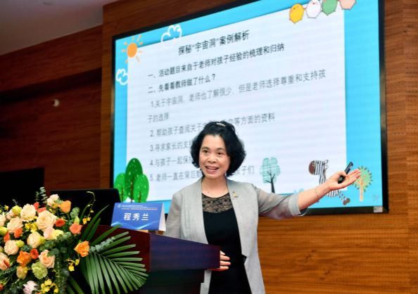BEAT365英国官网幼儿园教师李茸、陈小庆、王妮分享了BEAT365英国官网幼儿园课程建设过程中生发的《探秘宇宙洞》《沉浸生活慢慢成长》《羊房设计师》三个蕴含儿童味道的、有意义的课程故事。陕西师范大学程秀兰教授对三个案例进行了精彩点评。