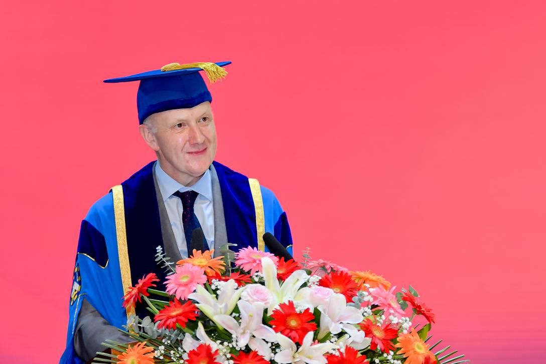 伦敦玛丽女王大学校长Colin Bailey教授在毕业贺词中表示,能第一次亲临典礼现场和同学们一起庆祝圆满毕业非常高兴。他对全体QMES教职员工、学生及其亲友表示感谢。他指出,合作、沟通与协作是克服全球共同挑战的关键因素。玛丽女王工程学院始终坚持融合中英双方高等教育的精髓,为学生提供优质的国际化本科教育。他强调,作为中外合作办学模式下成长的学生,大家拥有独特且强大的复合型能力,希望同学们在中国或未来工作和生活的地方,为社会发展做出积极贡献。在未来的几年中,伦敦玛丽女王大学将和大家保持联系,帮助大家充分利用伦敦玛丽女王大学校友会的资源,通过全球校友网络,建立新的联系,持续发展和提升职业生涯。