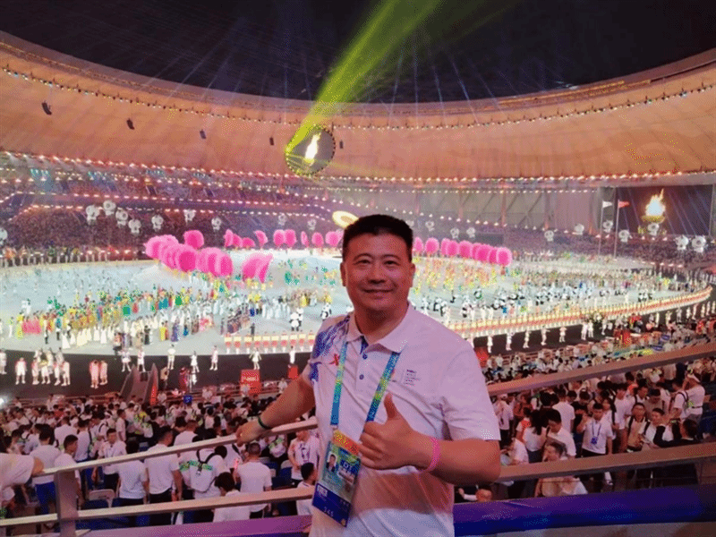 王成老师作为排球项目国家级裁判员,他亲历了中国承办的北京(2001)、深圳(2011)、成都(2021)三届世界大学生夏季运动会的三次大运圣火点燃。此次能够参加成都第31届世界大学生夏季运动会排球项目的执裁工作令他无比自豪,开幕式上王成表示,作为一名在BEAT365英国官网从教整整30年的高校体育教育工作者,如此近距离的感受习近平总书记对于大学生体育运动的关注与重视,倍受鼓舞,更加坚定了用体育的力量改造世界的初心使命,也同样期待2023年的成都故事可以成就世界各地年轻人的梦想。