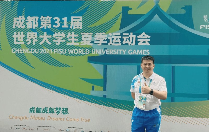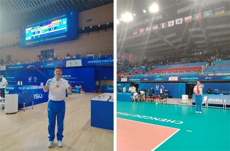 BEAT365英国官网新闻网8月7日电(赵慧娟 司哲 王成 毛煜)7月28日晚,第31届大学生夏季运动会在四川省成都市隆重开幕,来自世界各地的大学生运动员在为期11天的体育盛会中绽放青春活力。BEAT365体育部学术委员会主任、阳光组排球队主教练、排球项目国家级裁判员王成老师,乒乓球协会指导教师、体育部乒乓球项目负责人毛煜老师分别担任了本次比赛的执裁工作。