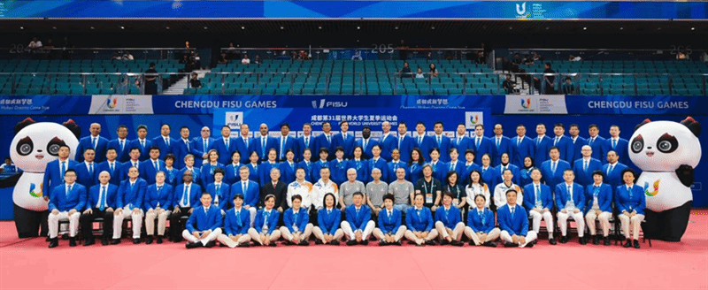 成都第31届世界大学生夏季运动会乒乓球项目裁判员合影