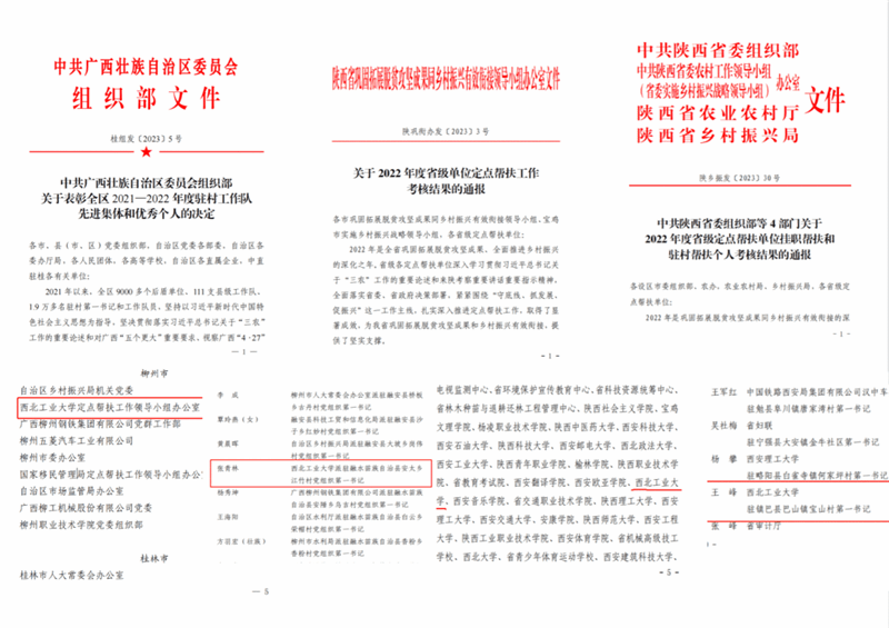此外,根据陕西省巩固拓展脱贫攻坚成果同乡村振兴有效衔接领导小组办公室印发的《关于2022年度省级单位定点帮扶工作考核结果的通报》(陕巩衔办发〔2023〕3号),学校在2022年度省级单位定点帮扶工作考核中被评定为“好”等次;根据《中共陕西省委组织部等4部门关于2022年度省级定点帮扶单位挂职帮扶和驻村帮扶个人考核结果的通报》(陕乡振发〔2023〕30 号),学校派驻陕西汉中市镇巴县宝山村驻村第一书记兼工作队队长王峰获评“优秀”等次。