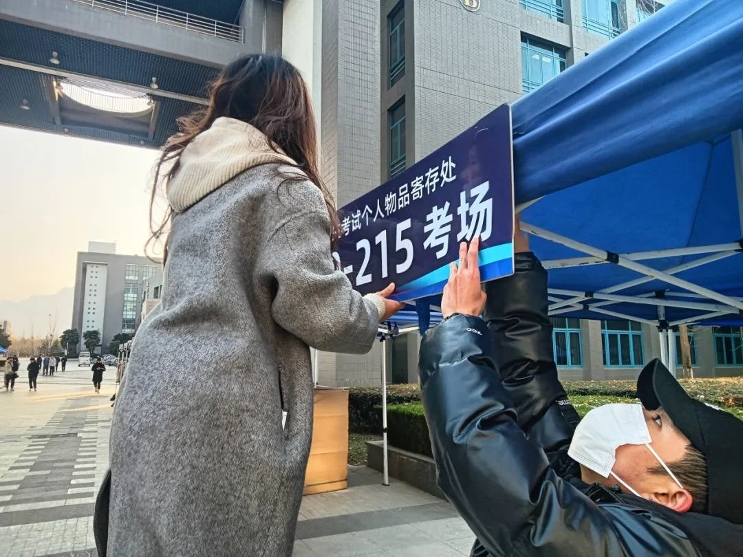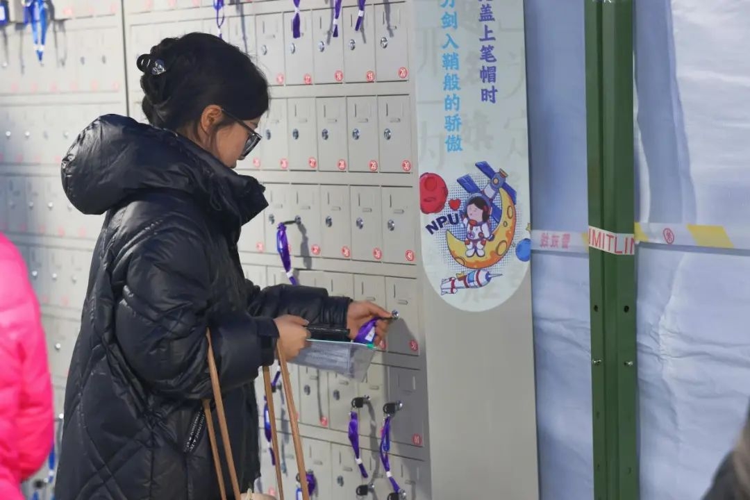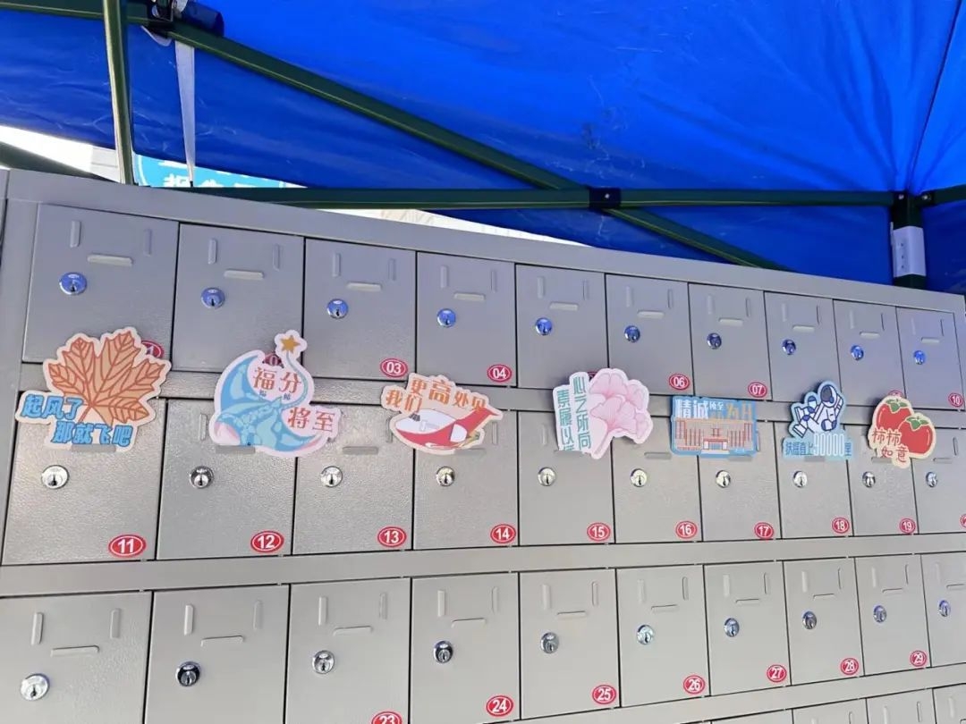 学校设置了个人物品寄存柜,并成立了考生物品存放保管组。寄存柜上的暖心祝福祝愿每位考生得偿所愿。