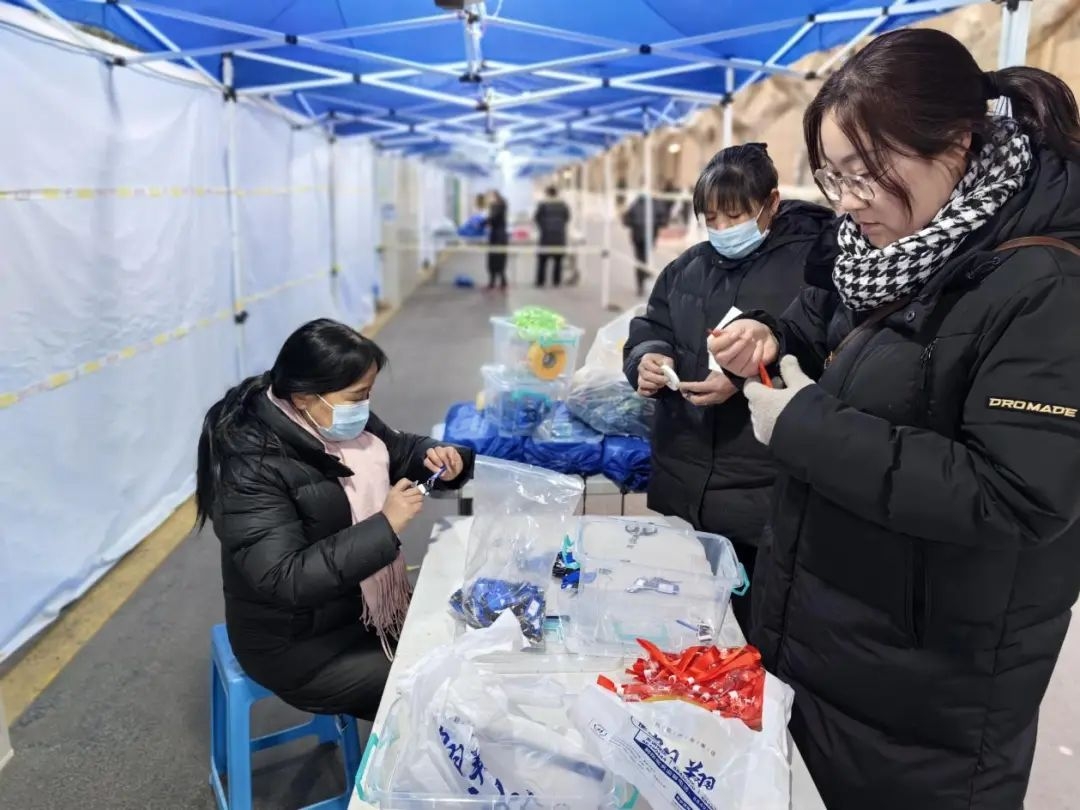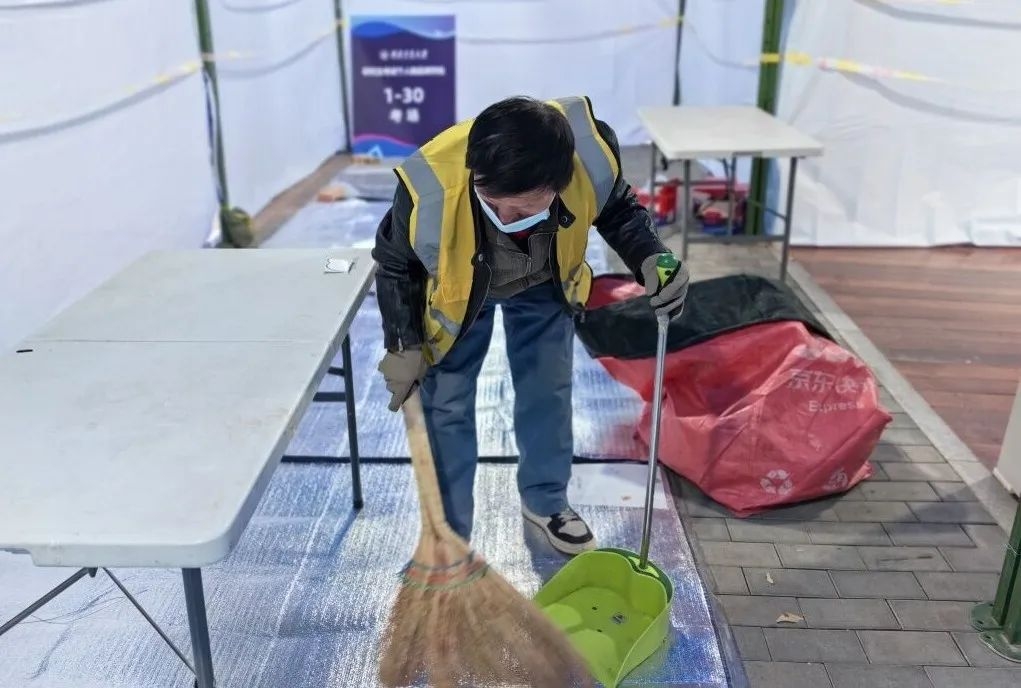 气温较低,学校特别在等候区搭建了防风帐篷。