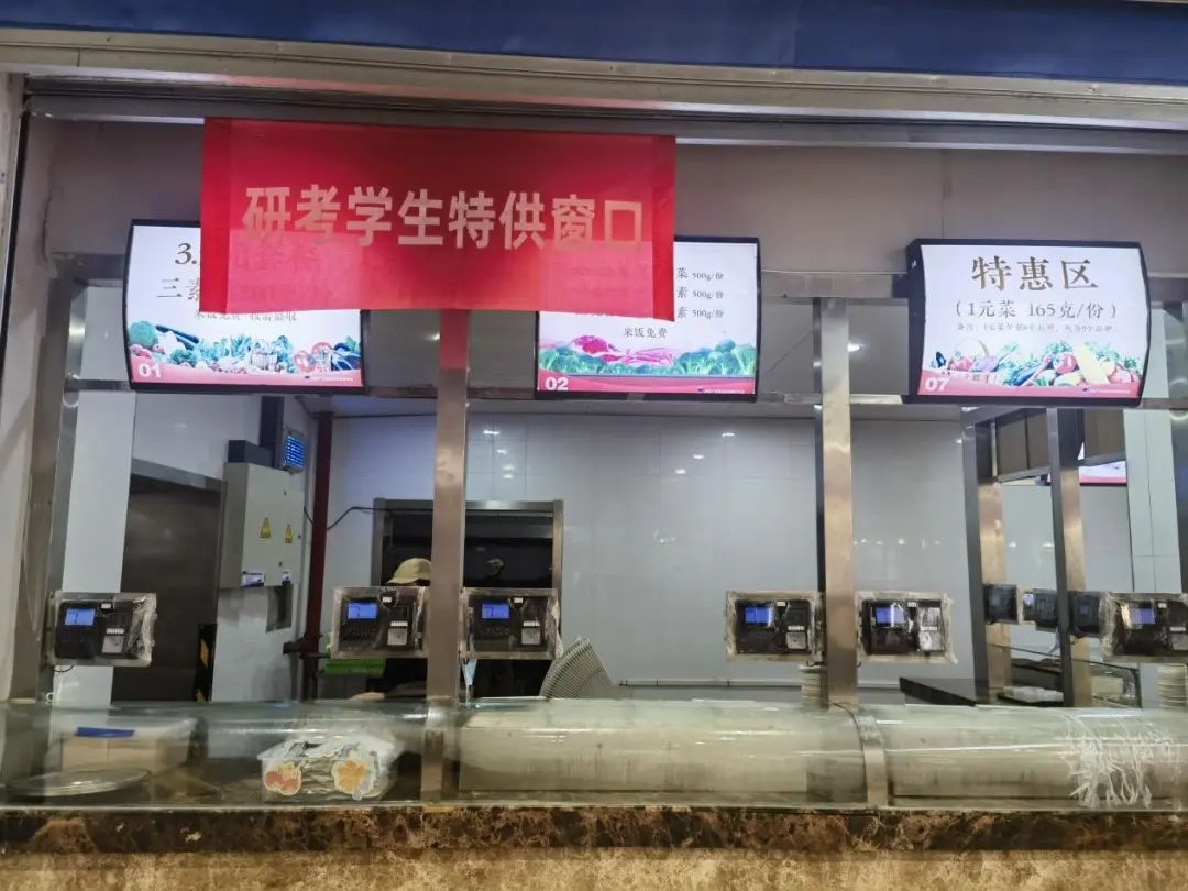为了保障考生中午就餐,学校在友谊校区学生一餐厅、长安校区云天苑餐厅一楼、星天苑南餐厅二楼开设考研专供窗口,并提供研究生考试套餐。