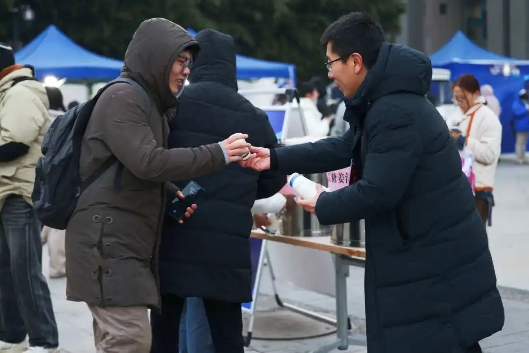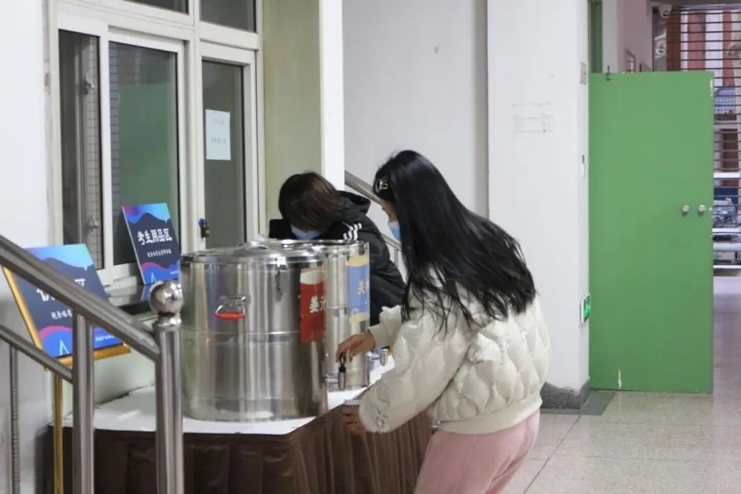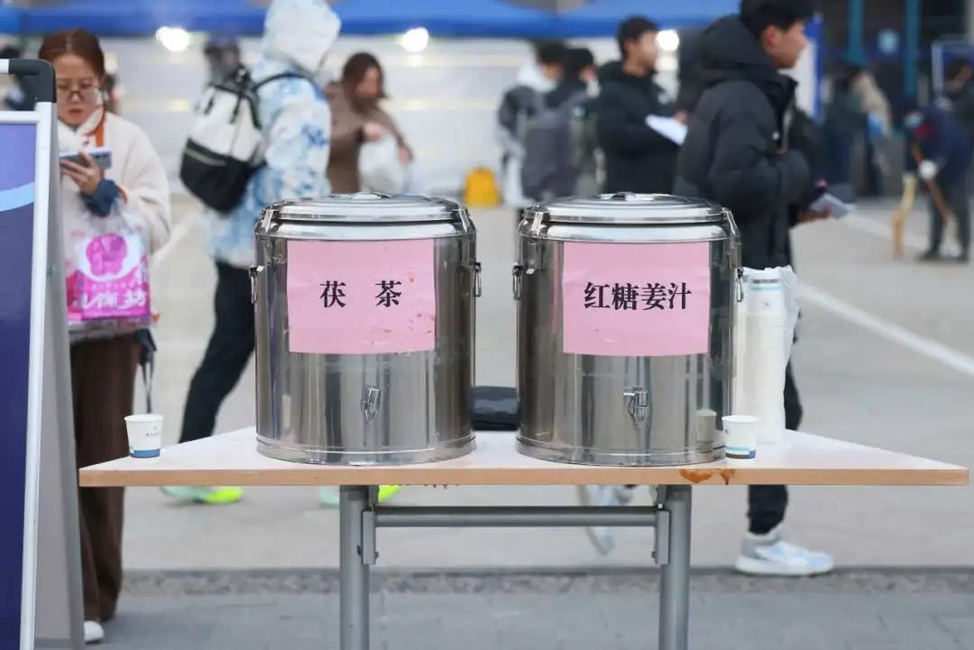 学校还在考场内外均设有服务台,红糖姜汁、茯茶足量供应,为考生们送上暖暖的祝福和鼓励。天寒地冻,热饮暖胃暖心~
