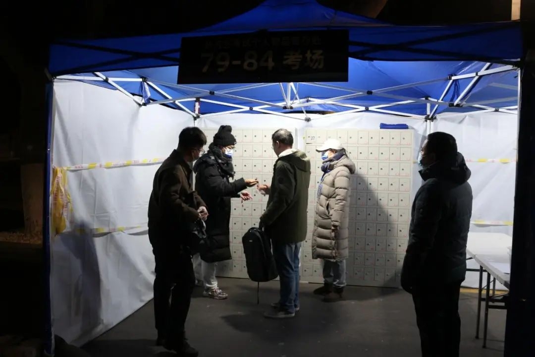 考生们在专人协助下有序放置和取回个人物品