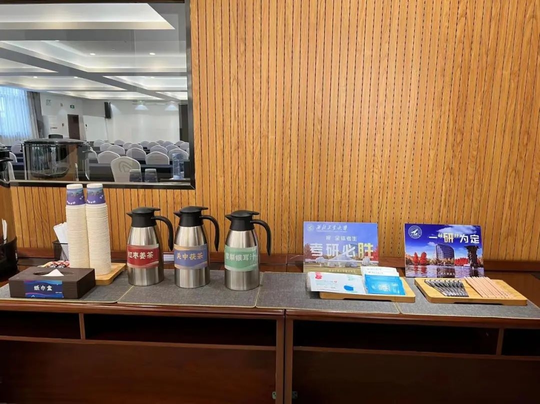 学校在校内宾馆、餐厅等地,开设有考生专用休息区域,并提供文具及热饮,确保考生以良好的状态应对接下来的考试。