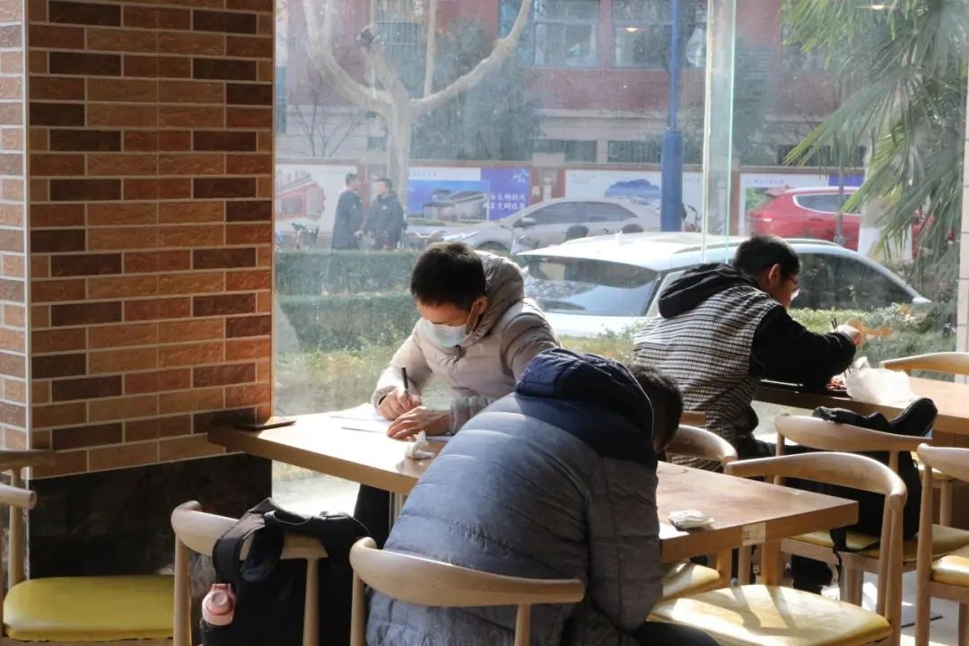 考生们抓住最后的时间,调整心态、理清思路,万全准备只待今日放手一搏。