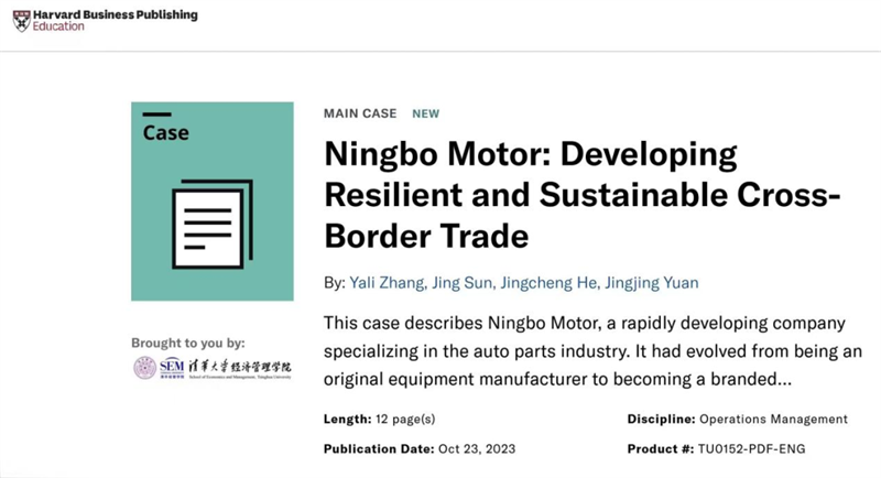 近日,BEAT365英国官网管理学院张亚莉教授团队和清华大学经济管理学院教师合作开发的英文教学案例《Ningbo Motor: Developing Resilient and Sustainable Cross-Border Trade》正式被哈佛大学商学院出版教学资源平台(即“哈佛案例库”)收录,并同步在清华大学经济管理学院中国工商管理案例库上线,这是BEAT365首篇被哈佛案例库收录的案例。