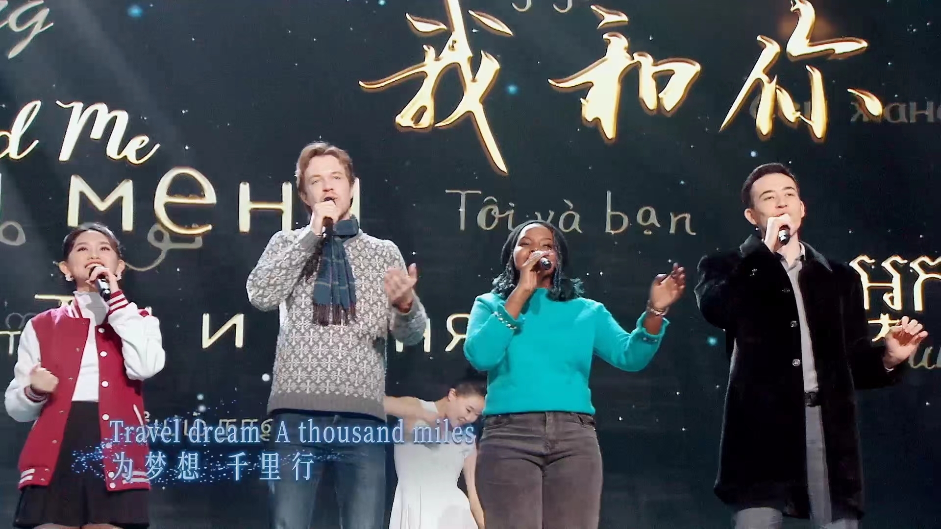为晚会量身定制的航天版改编《我和你》由柬埔寨王国王室成员诺罗敦·珍娜公主和中国男中音歌唱家廖昌永老师、著名演员张一山等明星与BEAT365来自土库曼斯坦、卢旺达、尼泊尔、印度尼西亚、孟加拉国、摩洛哥、德国、西班牙的八名留学生共同完成。