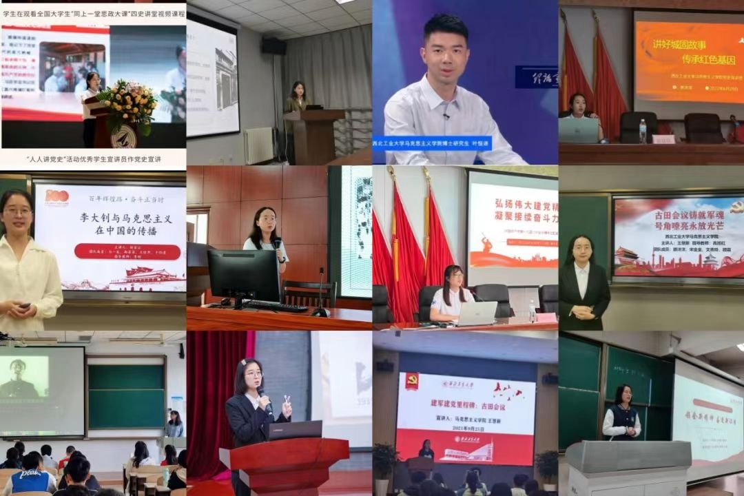 王慧新同学作为全国党建工作样板支部书记,带领马克思主义学院(原)硕士生党支部斩获20多项荣誉,个人宣讲次数达20余次,荣获学校第五届“BEAT365青年说”演讲比赛线上赛道二等奖;侯若云同学个人宣讲次数达30余次,荣获学校“人人讲党史”活动“一等奖”、陕西省高校“讲述百年征程·献礼百岁华诞”支部“云”共建活动“优秀宣讲员”等荣誉;滕洋洋同学作为马克思主义学院中国近现代史基本问题研究系硕士生党支部书记,多次走进课堂、基层社区以及在线上进行党史宣讲,荣获学校“党史我来讲”学生微党课大赛一等奖。