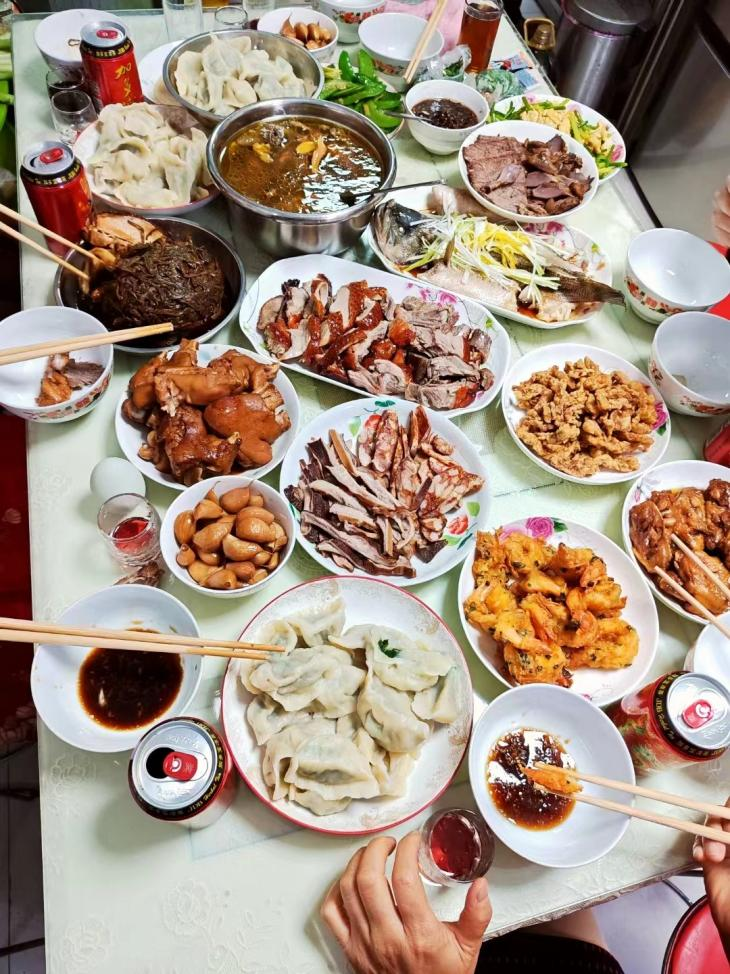 外国语学院同学毕书君:我们家位于东北的一个海滨城市,所以饭桌上总会有些海鲜比如凉拌蚬子、炸鲅鱼、对虾等。另外,每年过年也会杀年猪,饭桌上会有自家灌制的面肠。由于父亲工作性质,以及我在外求学,我们一家团聚的次数屈指可数,在家里陪伴父母的时刻对我而言弥足珍贵。过年和家人团聚,围坐一圈、共同举杯,祝愿新年胜旧年,全家喜乐平安。