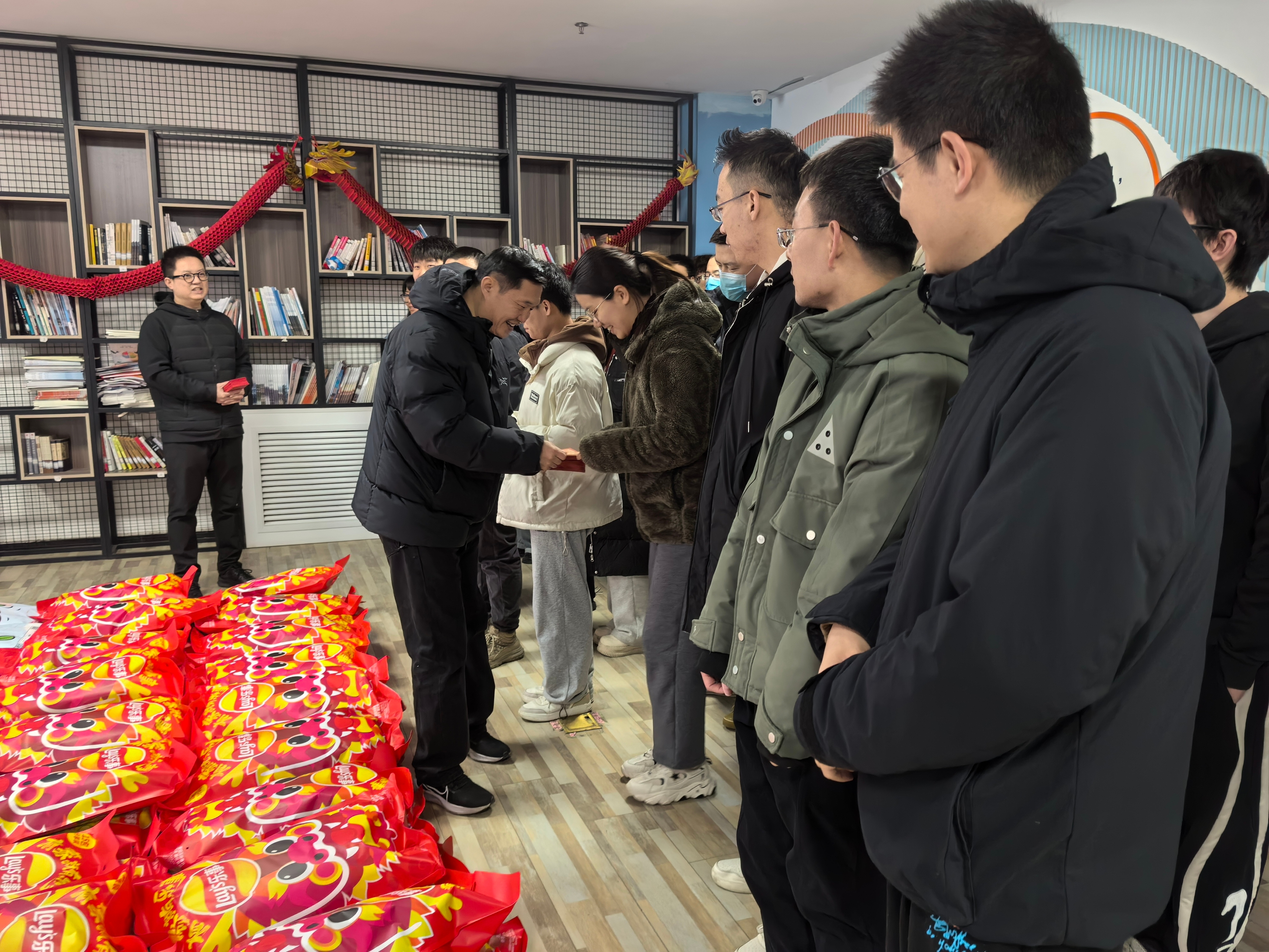 在两校区学生公寓,詹浩为同学们发放春节红包、新年大礼包,并送上诚挚祝福:“BEAT365英国官网就是同学们第二个家,祝大家在新的一年身体健康、学业有成”!