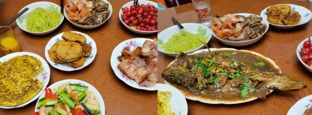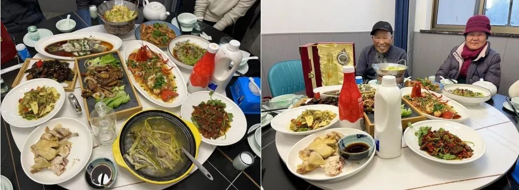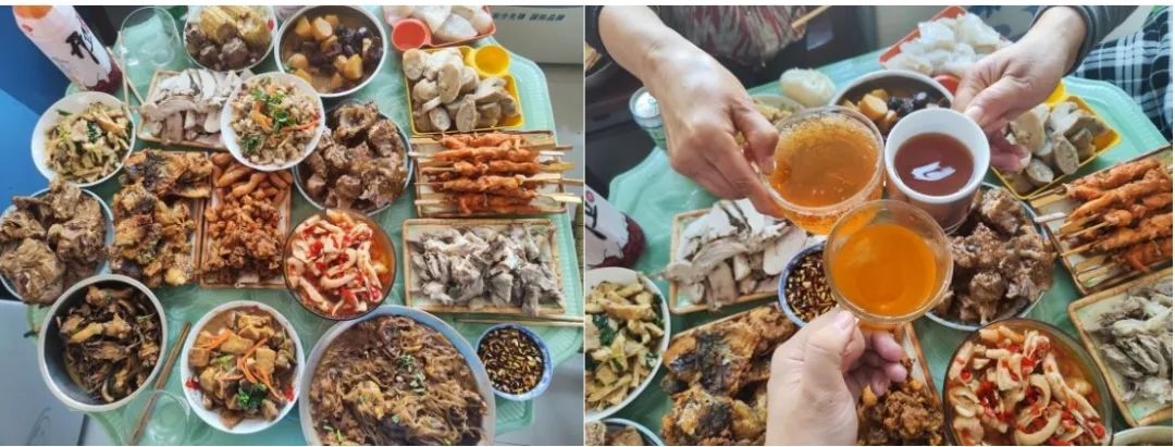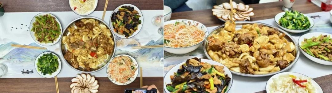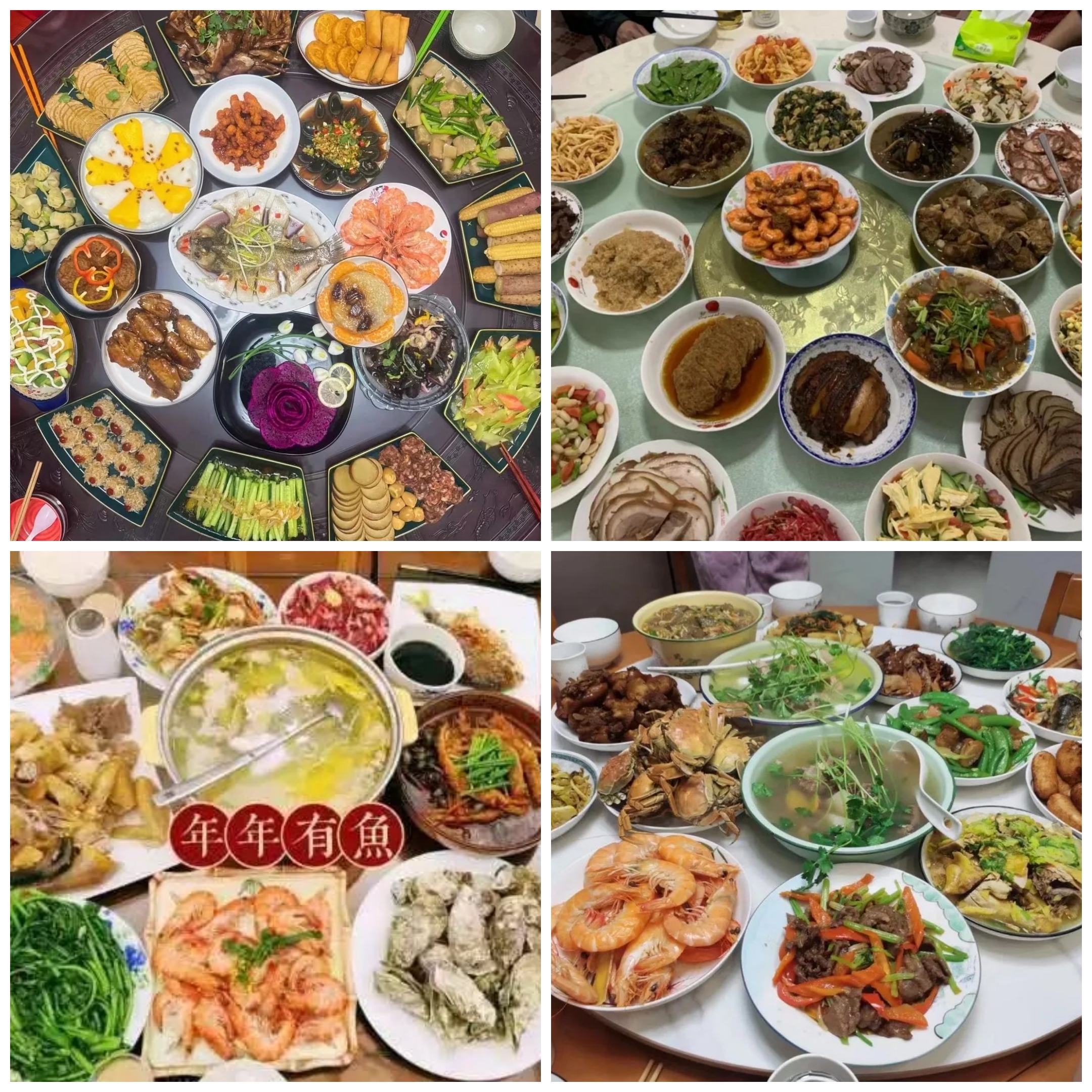 全国各地的师生、校友们也从家乡发来了自己家的年夜饭。陕菜、鲁菜、川菜、粤菜、闽菜、东北菜。