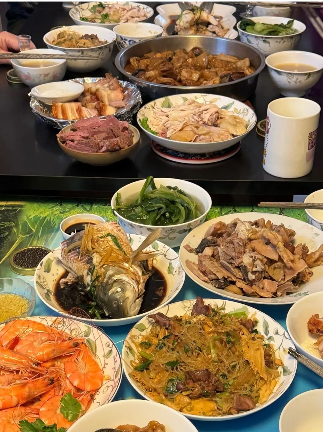 90级飞机设计专业校友 戚承权:从古都长安到南粤羊城,今年的年夜饭主打粤菜:大盆菜、清蒸鱼虾、白切鸡、烧肉、水鱼花胶汤,祝大家龙年大吉万事如意!