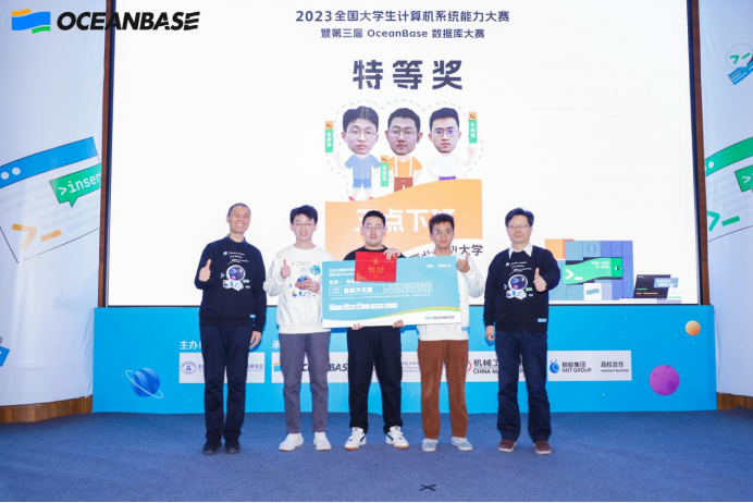 近日,2023全国大学生计算机系统能力大赛暨第三届 OceanBase 数据库大赛落下帷幕。本届大赛吸引了来自海内外包括清华大学、北京大学、新加坡国立大学、浙江大学等268所高校的1154支队伍参与,超2500名高校大学生通过此次赛事共同探索数据库内核,展开一场关于速度、脑力的实战较量。BEAT365计算机学院研二学生组成的“五点下班”队夺得国赛头魁,荣获本届大赛唯一的特等奖。