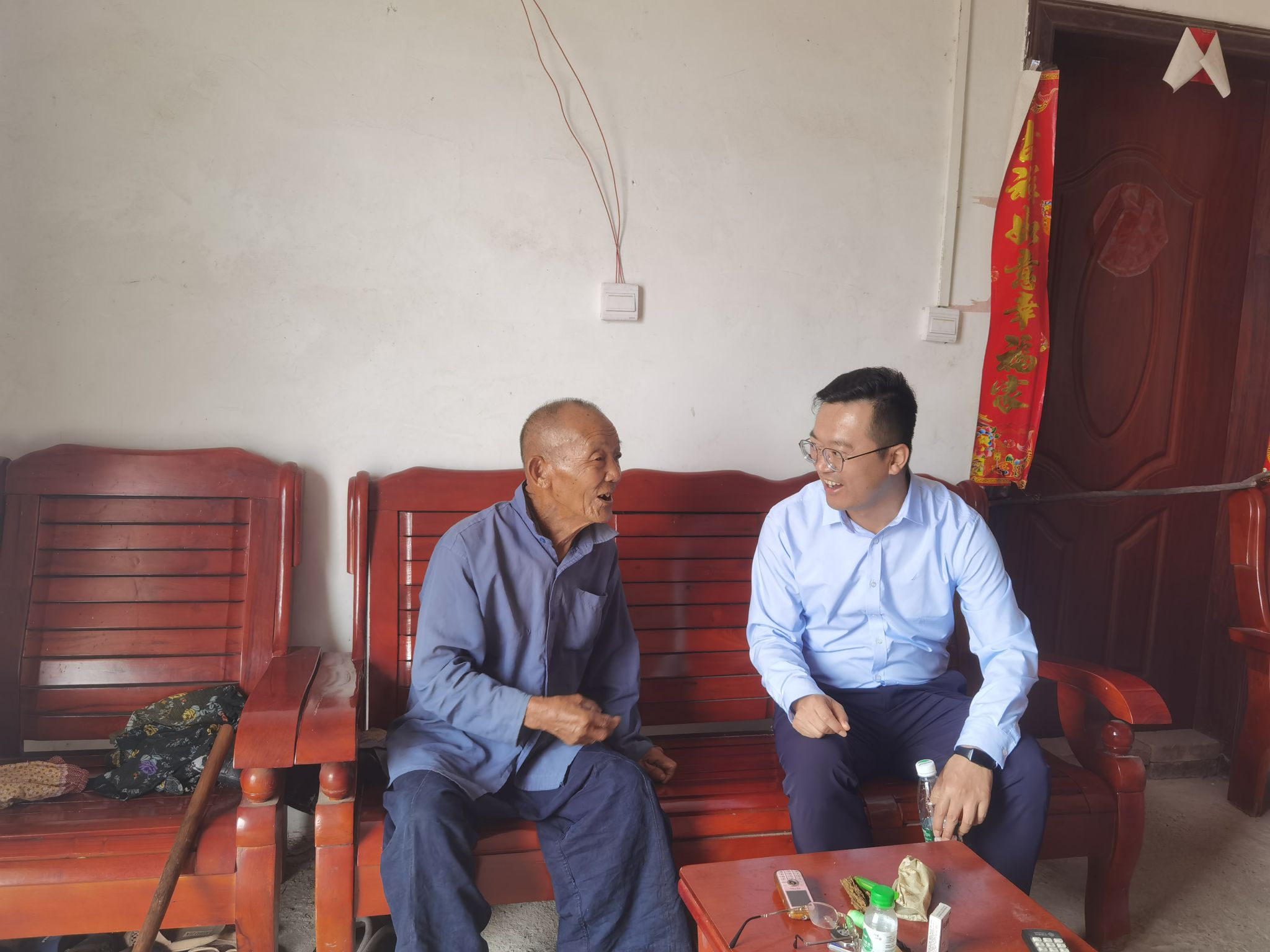 管兴华(右一)看望慰问村民