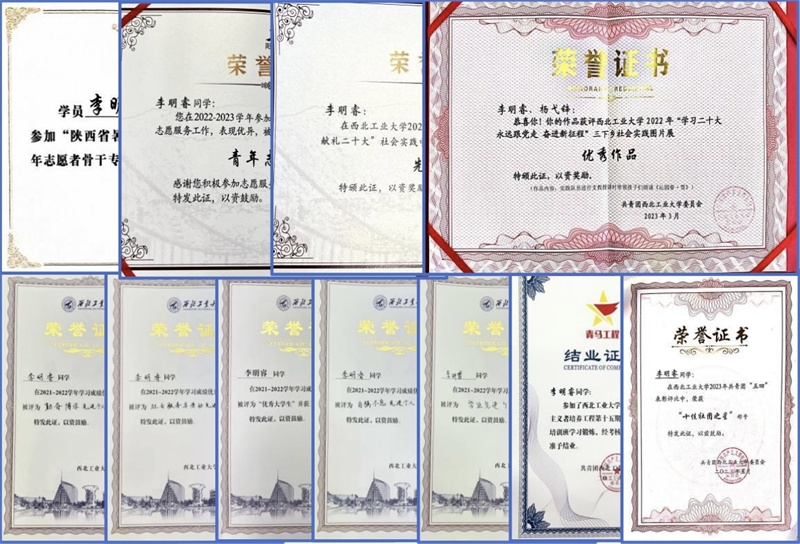 她还多次参加学校青马工程等第二课堂,