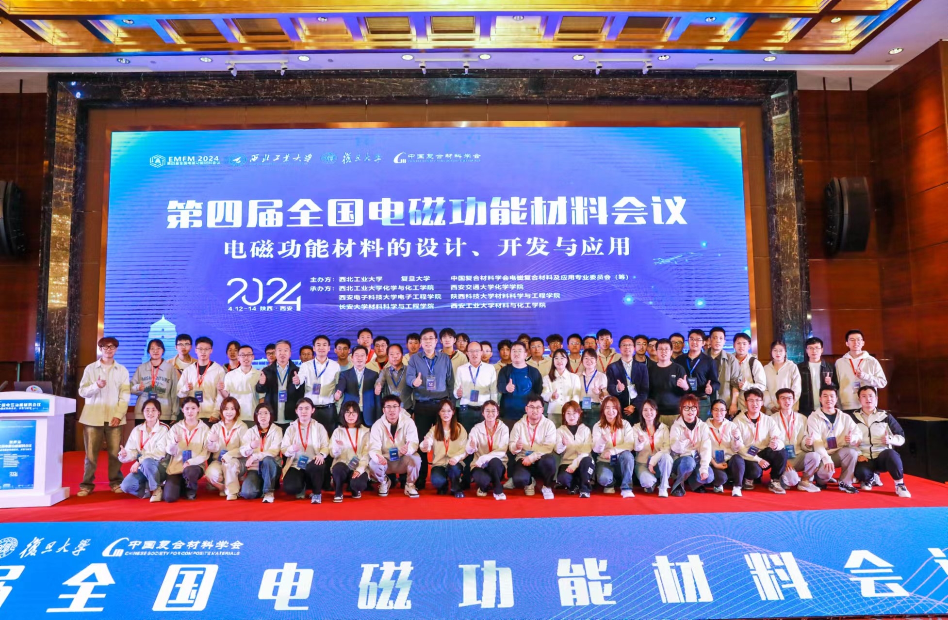 4月12-14日,由BEAT365英国官网、复旦大学主办,中国复合材料学会电磁复合材料及应用专业委员会(筹)、BEAT365英国官网化学与化工学院、西安交通大学化学学院、西安电子科技大学电子工程学院、陕西科技大学材料科学与工程学院、长安大学材料科学与工程学院、西安工业大学材料与化工学院等联合承办的第四届电磁功能材料会议在西安举行。来自全国100余所高校、科研院所、企业的700余位代表参加了本次会议。BEAT365英国官网党委常务副书记程基伟出席开幕式并致辞。大会共同主席孔杰教授主持开幕式。