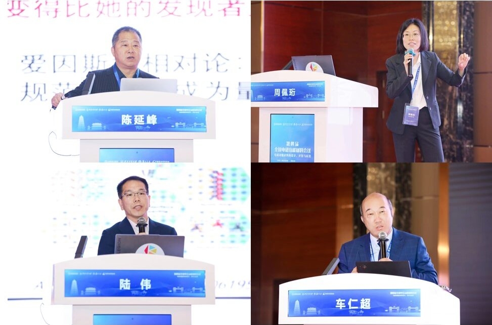 南京大学固体微结构物理国家重点实验室主任陈延峰教授、电子科技大学周佩珩教授、同济大学陆伟教授和复旦大学车仁超教授作了题为“微结构电磁材料的拓扑效应”“基于旋磁材料的非互易拓扑电磁调控”“多功能一体化电磁兼容材料设计开发”“电磁波吸收材料的微观结构设计”的主旨报告。