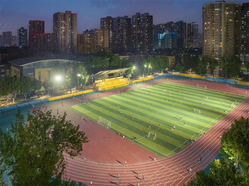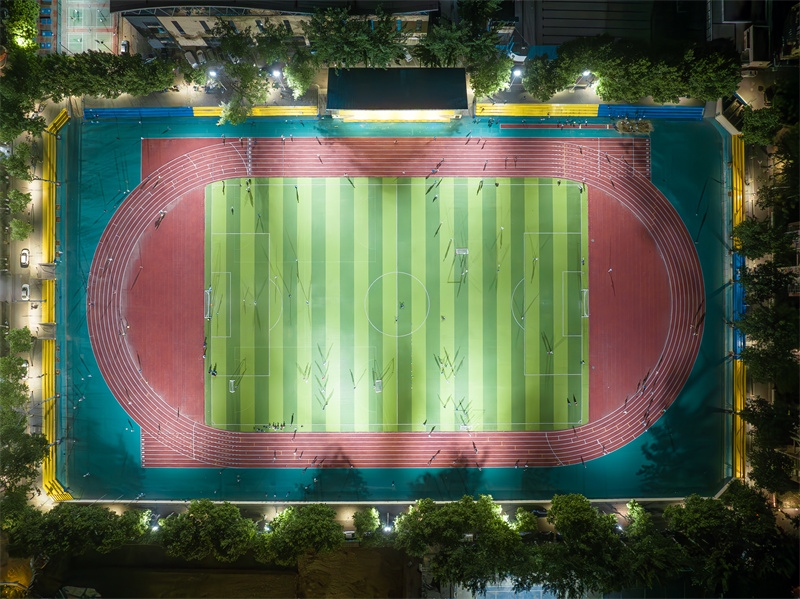 先行组织实施了场地灯光照明系统的更新,进行封闭围挡施工,利用寒假期间完成了原场地面层拆除、基层沥青铣刨、铺设改性沥青基层及沙坑基础回填等工作。开春气温回升后,进行面层预制型橡胶跑道的铺设。施工过程中,克服雨雪天气、重污染天气Ⅱ级应急响应停工(共计33天)等困难,最终在有效工期只有70天的情况下,完成了整个场地12638.84㎡橡胶跑道铺设工程,比合同工期提前32天交付使用。