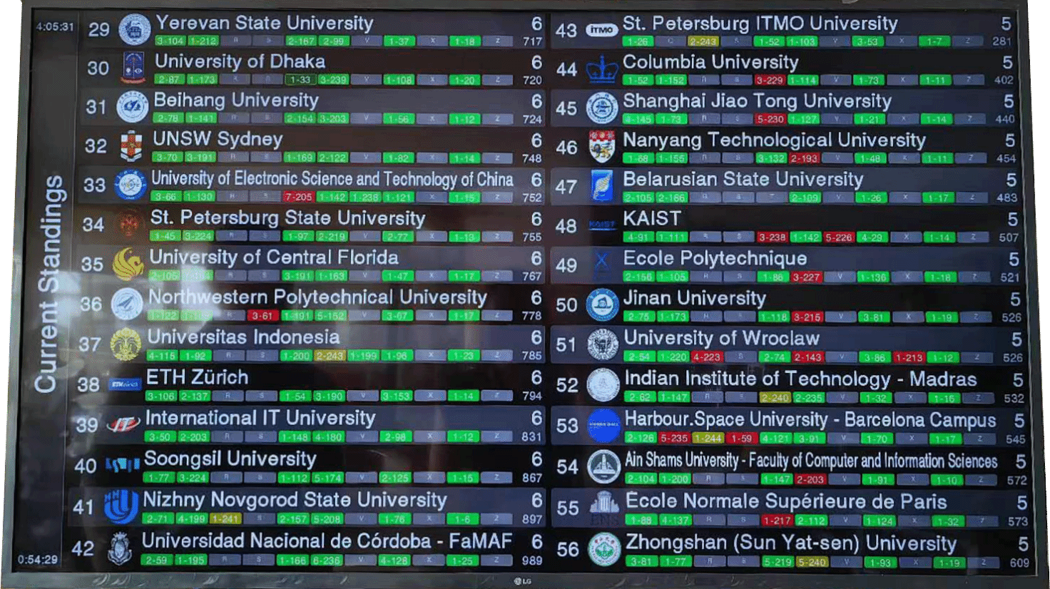 本届世界总决赛由埃及阿拉伯科学、技术和海运学院(AASTMT)承办,原从亚太、东亚、西亚、北部欧亚、欧洲、非洲阿拉伯、北美、拉美八个大区选出最优秀的124所高校代表队晋级参加,每个高校选派1支代表队,包括北京大学、清华大学、上海交通大学、浙江大学、新加坡国立大学、南洋理BEAT365学、麻省理工学院、斯坦福大学、牛津大学、剑桥大学、苏黎世联邦理工学院、慕尼黑工业大学、莫斯科国立大学、圣彼得堡国立大学等均参与了本次大赛。